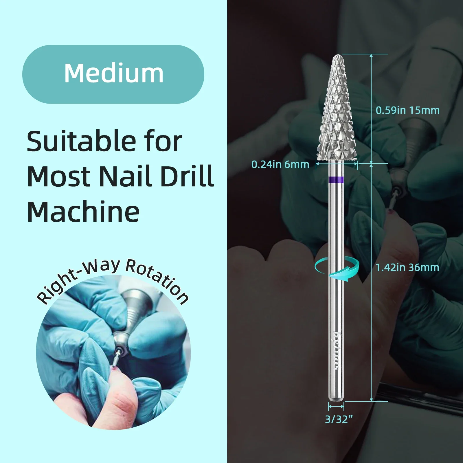 - Shank diameter of 3/32″ (2.35mm), designed to fit all standard electric nail drills for easy attachment and secure hold.