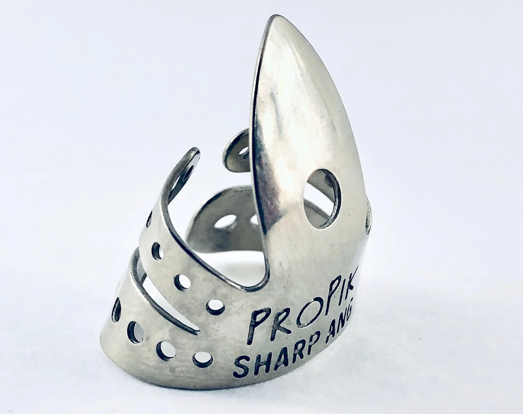 Experience exceptional precision and clarity with the ProPik Sharpie Fingerpick, crafted in the USA. This versatile fingerpick features a 0.025-inch thick blade with a sharpened tip for bright, focused tone and enhanced articulation. Available in nickel-silver for a crisp sound or brass for a warmer, vintage feel, it offers straight or angled blade options and single or split wrap styles for optimal comfort and adjustability. Fully adjustable to fit most finger sizes, this high-quality accessory is perfect for musicians seeking a responsive, dynamic playing experience. Its sleek, polished metallic finish and thoughtful design make it a must-have for dedicated string players aiming for precision and tonal excellence.
