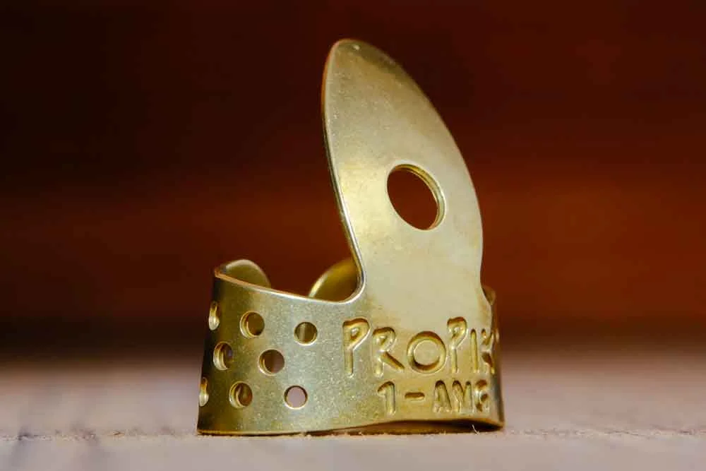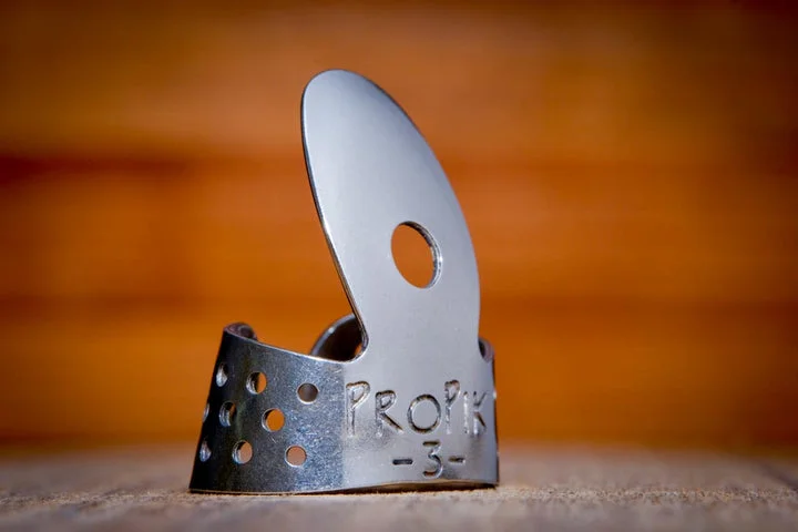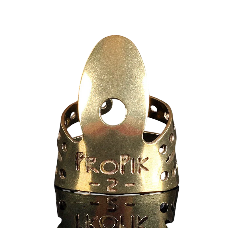 Imagine elevating your guitar playing with this meticulously crafted ProPik Standard Metal Guitar Fingerpick. Its sleek, shiny silver finish captures the eye, while the minimalist design ensures comfort and precision with every strum. The vintage-inspired single-wrap pierced band not only guarantees a secure fit but also adds a touch of timeless elegance. Whether you're seeking bright, articulate tones or warm, full-bodied sounds, this pick’s adjustable flexibility and three profile options make it ideal for various styles. Handcrafted from high-quality nickel-silver or brass, each pick exudes craftsmanship and heritage. Feel confident to experiment, knowing this premium tool is designed to enhance your tone and playing experience, beautifully blending vintage aesthetics with modern functionality.
