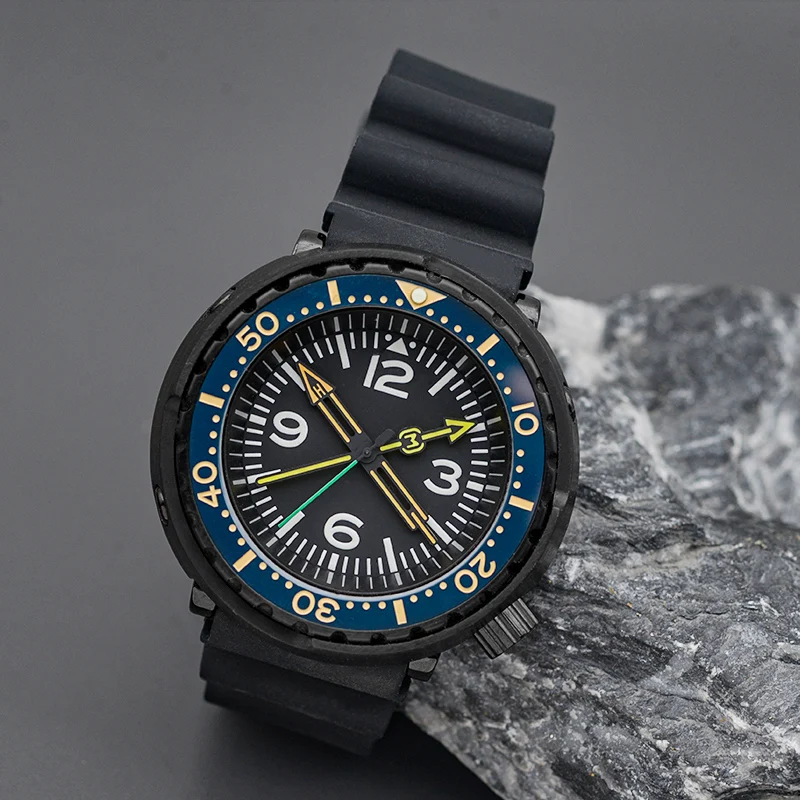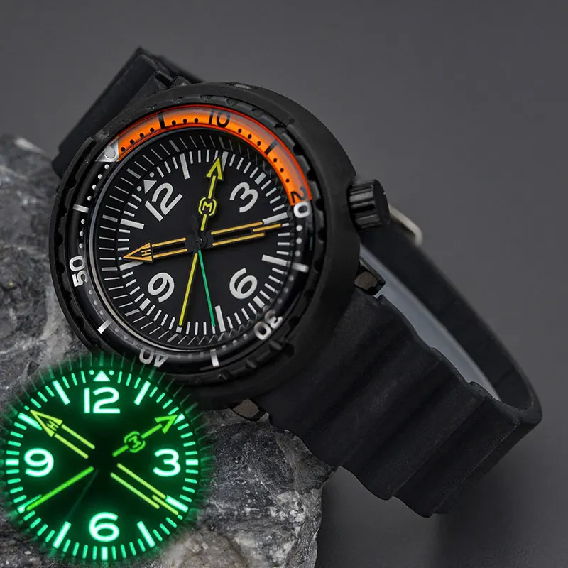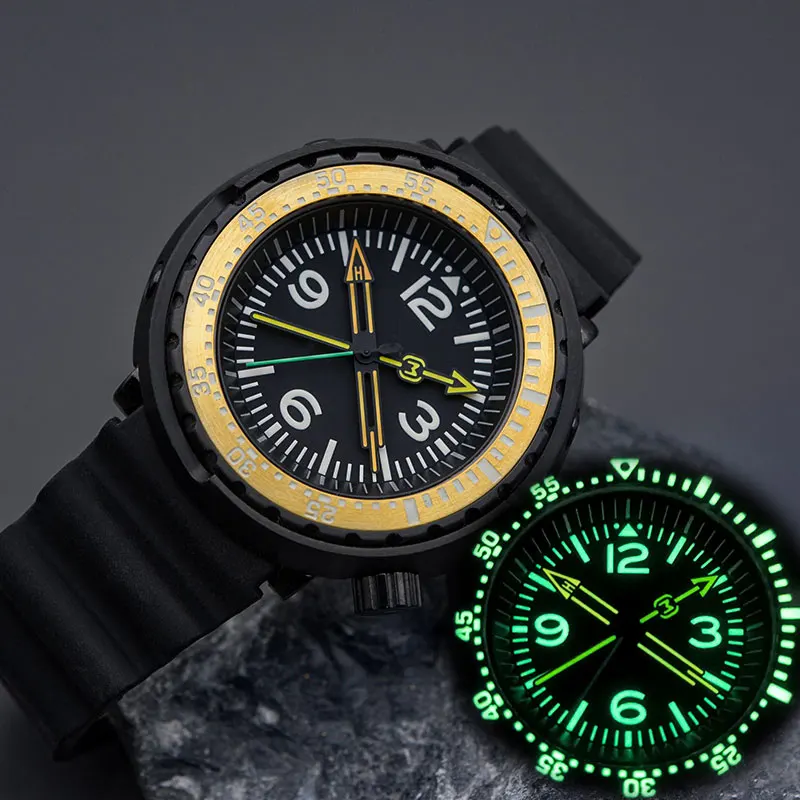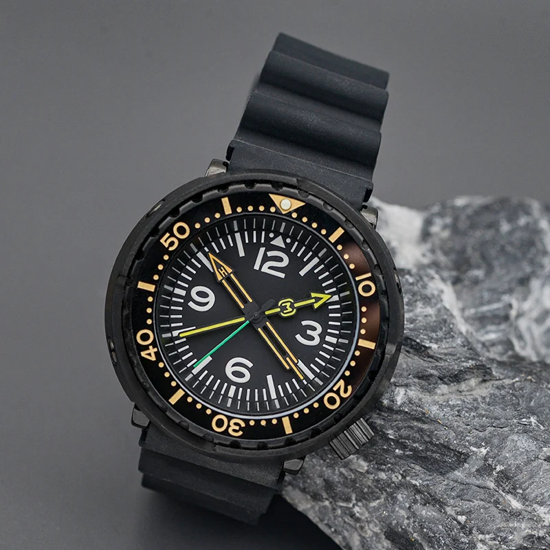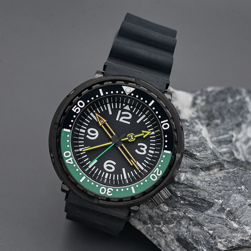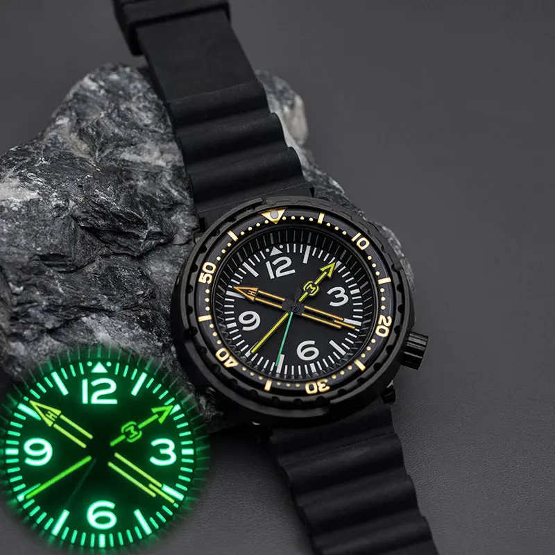 The Prospex SRPC49 model is a rugged black dive watch featuring a 47mm diameter stainless steel case with a 15mm thickness, equipped with a scratch-resistant sapphire crystal face. It offers 20 ATM (200 meters) water resistance through a sealed screw-in back cover and crown at 4.1 o’clock, making it suitable for swimming and diving. The watch displays luminous green hands and markers, including a 24-hour subdial on a 28.5mm dial, for excellent low-light visibility. Its unidirectional bezel has a 38mm outer diameter and 31.6mm inner diameter, compatible with standard straps. Powered by accurate Japan NH35 or NH36 automatic movements, this timepiece combines durability, style, and precision for active lifestyles.
