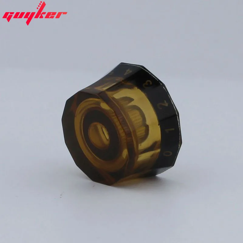 Enhance your electric guitar with this high-quality control knob, featuring a stylish design in two colors: warm brown and elegant pale. Crafted from durable plastic, the knob is designed for smooth operation with a clear, easy-to-read number marking system—either from “0” to “3” for simple controls or “1” to “10” for finer adjustments. Its universal compatibility makes it perfect for volume or tone functions, providing both functional precision and aesthetic appeal. The model number PRS ensures a perfect fit and reliable performance. Elevate your guitar’s look and feel with this versatile, visually appealing control knob.