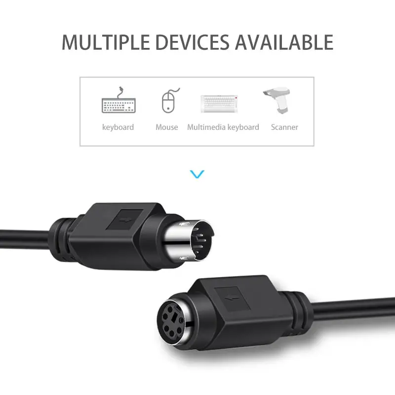 Enhance your PS/2 device setup with this durable, black extension cable featuring a sleek, rubberized texture for flexibility and longevity. Crafted with pure copper wiring and gold-plated connectors, it ensures high conductivity and minimal signal loss. The round, black plastic connectors have a polished matte finish, with a slightly flattened side for easy orientation. Compatible with various lengths from 0.5 meters to 10 meters, this cable supports seamless extension of PS/2 mice and keyboards. Its minimalist design combines practical robustness with a streamlined aesthetic, perfect for professional and home setups requiring reliable, high-quality connections. Designed for adult enthusiasts, this high-performance extension guarantees both durability and excellent signal transmission, enhancing your hardware experience.
