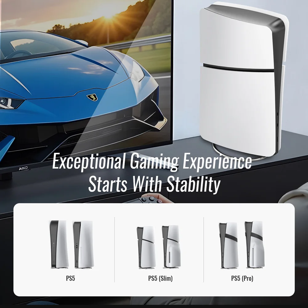 - Precisely designed to fit both PS5 PRO and PS5 Slim versions securely, ensuring optimal stability and minimizing risk of tip-over during intense gaming sessions.