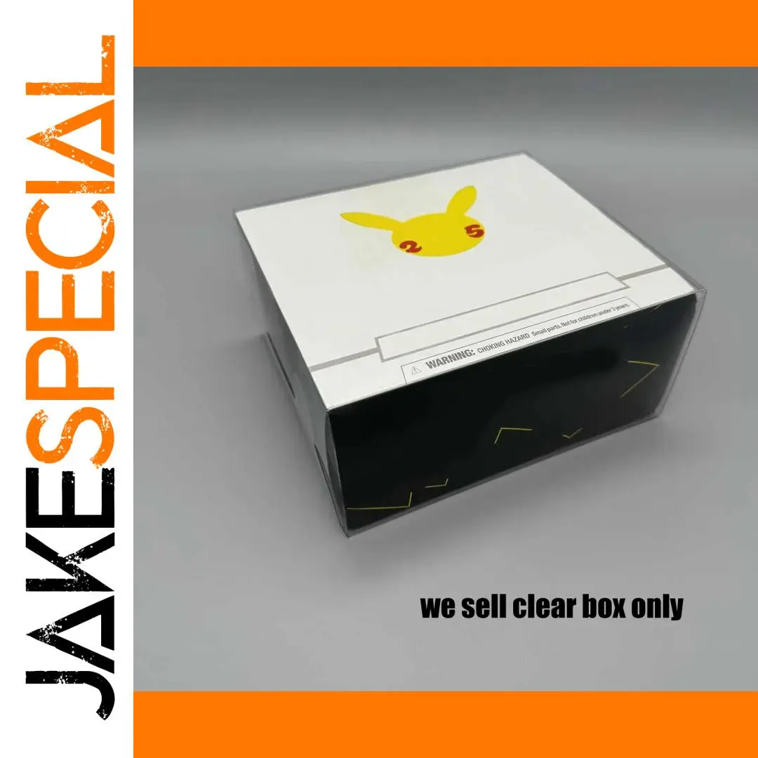 Enhance your Pokémon TCG collection with this transparent protection box designed exclusively for the PTCG 25th Anniversary Celebrations Elite Trainer US Version. Visualize your cards perfectly displayed and protected, adding a professional touch to your collection display. Whether you're a dedicated collector or an avid player, this box offers a practical yet stylish solution. Its sturdy PET build ensures long-lasting use, while its transparency allows your cards to shine. Don't wait to organize your valuable cards—order now and enjoy a cleaner, more elegant collection presentation that you'll be proud of every day.