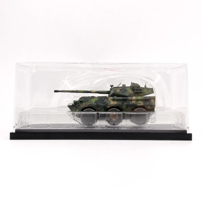 The PTL-02 wheeled armored vehicle model is an exceptional collectible that brings military realism to your display. Crafted at a 1:72 scale, this intricate model spans approximately 113mm in length, 40mm in width, and 45mm in height. Made from durable ABS plastic, it showcases a stunning jungle digital camouflage pattern with shades of green, brown, and dark gray. The movable turret with a long cannon adds an impressive touch, while the detailed surface features hatches and compartments, enhancing its authenticity. This model is perfect for discerning collectors who appreciate quality craftsmanship.