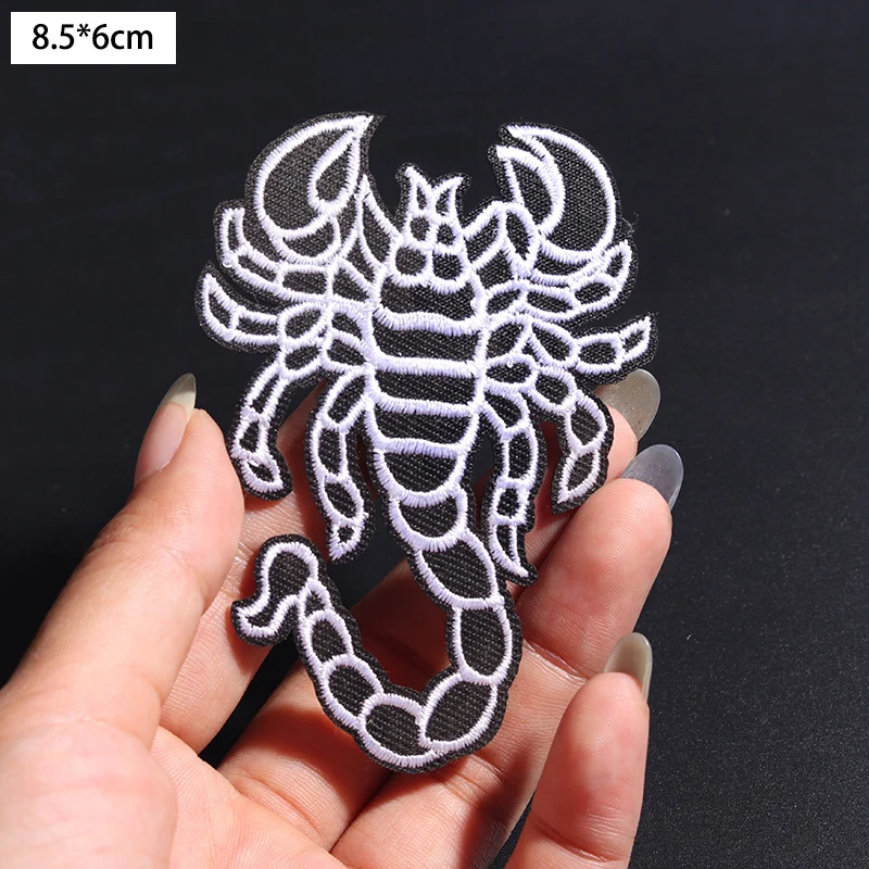 This Punk Black Scorpion patch is a captivating accessory that combines a fierce design with an edgy aesthetic. Measuring 8.5 cm by 6 cm, this embroidered patch features intricate white stitching on a striking black background, beautifully detailing the scorpion's anatomy. Its well-defined claws and curled tail highlight its aggressive stance, making it perfect for adding a bold touch to your clothing. Made from durable non-woven fabric, the cleanly finished edges allow for both iron-on application and sewing, ensuring versatility in styling. Elevate your wardrobe with this unique animal motif that resonates with both punk culture and wildlife enthusiasm.
