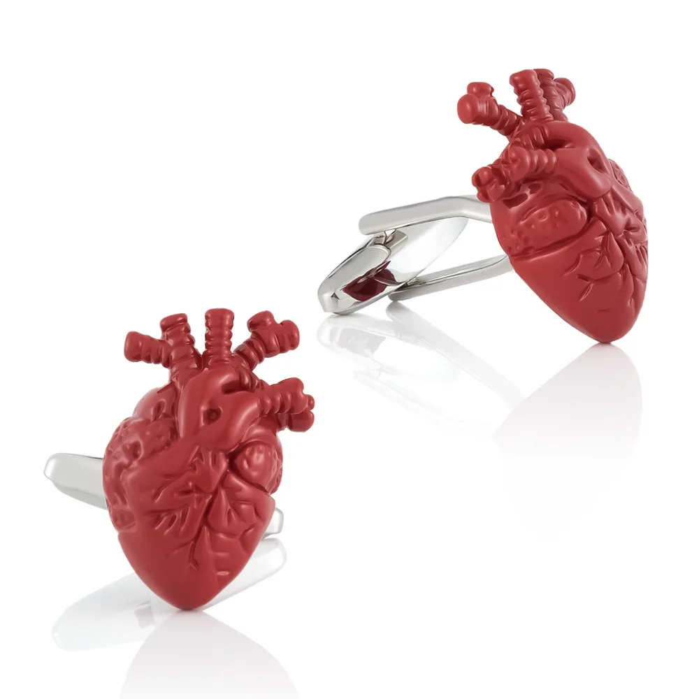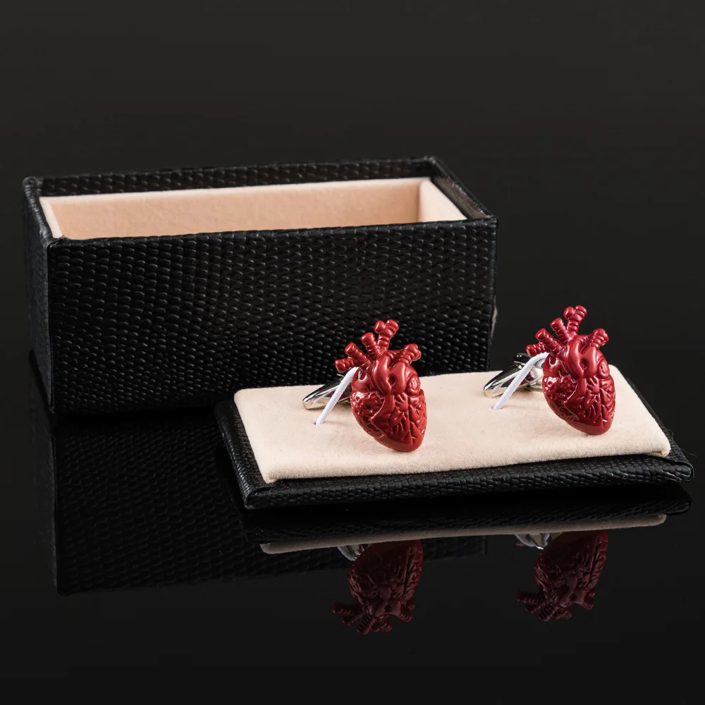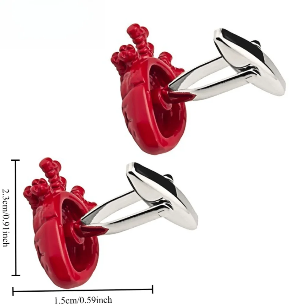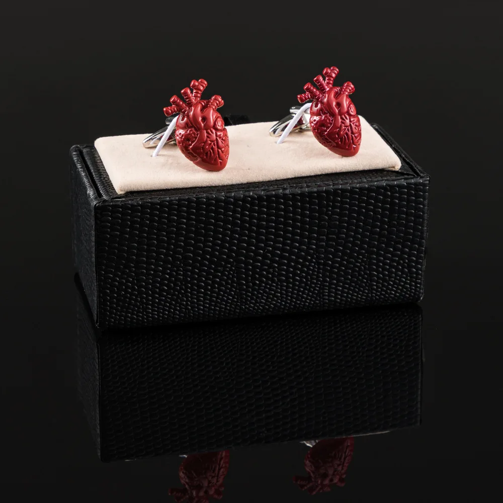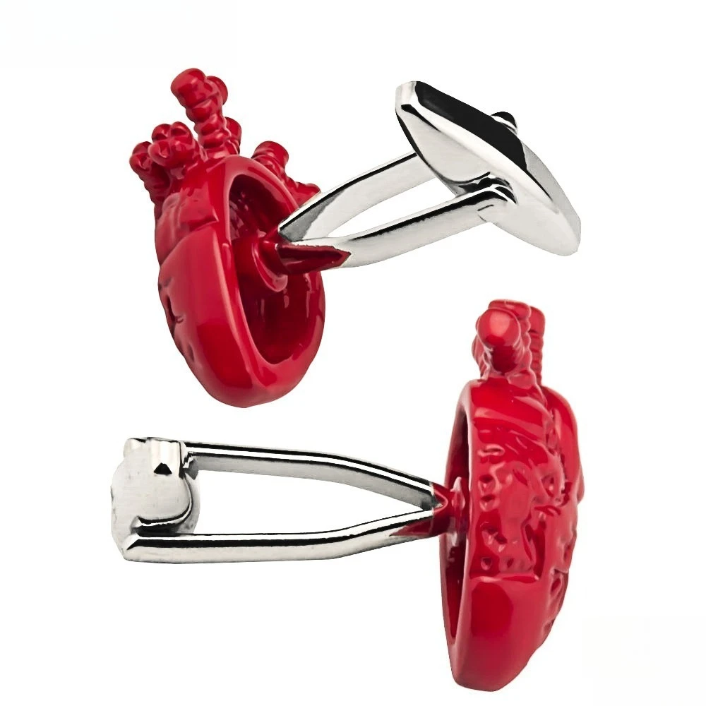 These Punk Red Painted Heart-shaped Cufflinks are a bold fashion statement perfect for any occasion. Crafted from durable alloy, the striking red finish immediately captivates attention, presenting a detailed design resembling an anatomical heart with intricate veins and arteries. The edgy punk aesthetic pairs beautifully with any outfit, whether casual or more formal. These cufflinks are suitable for everyone and can easily be applied to jackets, backpacks, or even hats, making them versatile for any style enthusiast. With a slight size variance of 1-3mm applicable, these accessories are designed not only to make a statement but also to offer comfort and durability.