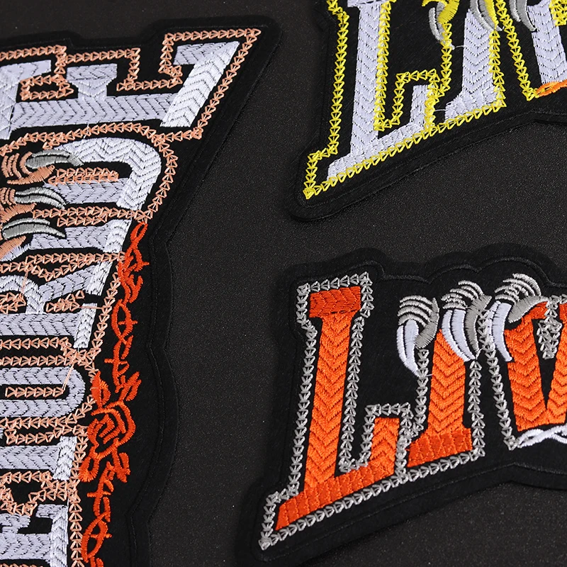 Elevate your style with these unique iron-on patches, featuring vibrant punk-style lettering. Measuring 31×11 cm, each patch is crafted from durable non-woven fabric and designed with intricate embroidery. The bold, stylized phrase “LIVETOTRIVE” is showcased in shades of orange, yellow, white, and silver, creating an edgy aesthetic that’s perfect for personalizing your favorite outfits. With a 3D effect and decorative elements like twisted ropes and floral motifs, these patches are not just accessories; they’re a statement. Easily apply them with a household iron or a heat press machine, making them ideal for t-shirts, bags, or pants. Create an unforgettable look that reflects your personality!