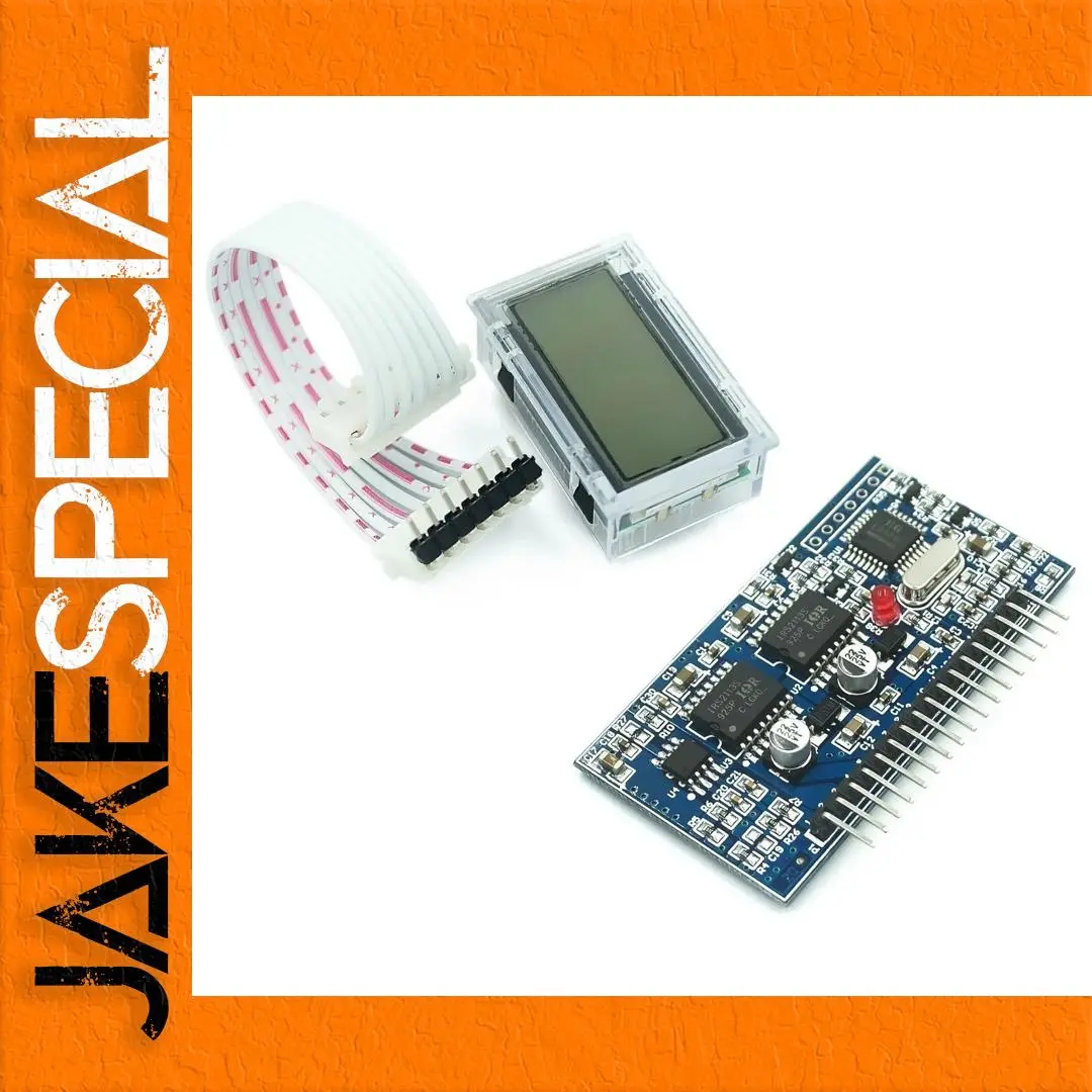 The Pure Sine Wave Inverter Driver Board features the EGS002, EG8010, and IR2110 driver module, designed for efficient application in inverter systems. It operates under standard power dissipation conditions, with a customizable supply voltage option and choices for low-voltage protection. The board showcases a blue rectangular design, equipped with organized components, including capacitors and integrated circuits, while a light green display module within a transparent casing provides visual feedback. Connectivity is enhanced with white connector wires featuring red stripes, and a small red LED serves as a power indicator, all contributing to a compact, functional layout.