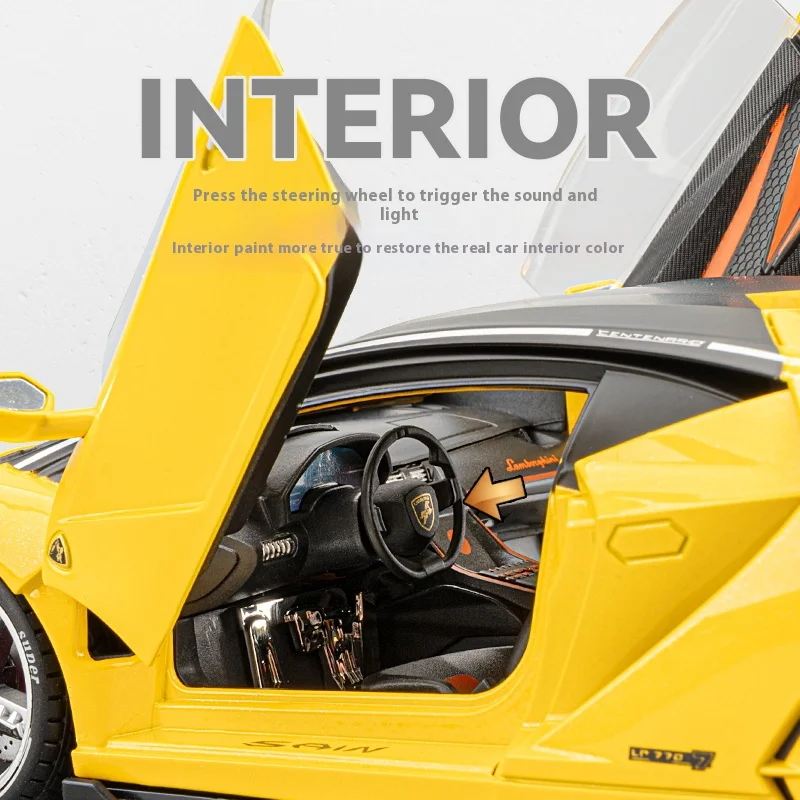 - Open the vertically swinging doors to reveal a meticulously detailed interior, complete with seats, dashboard, and steering wheel, increasing realism and making it a great display piece.