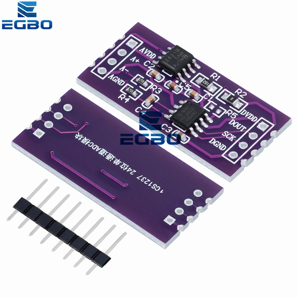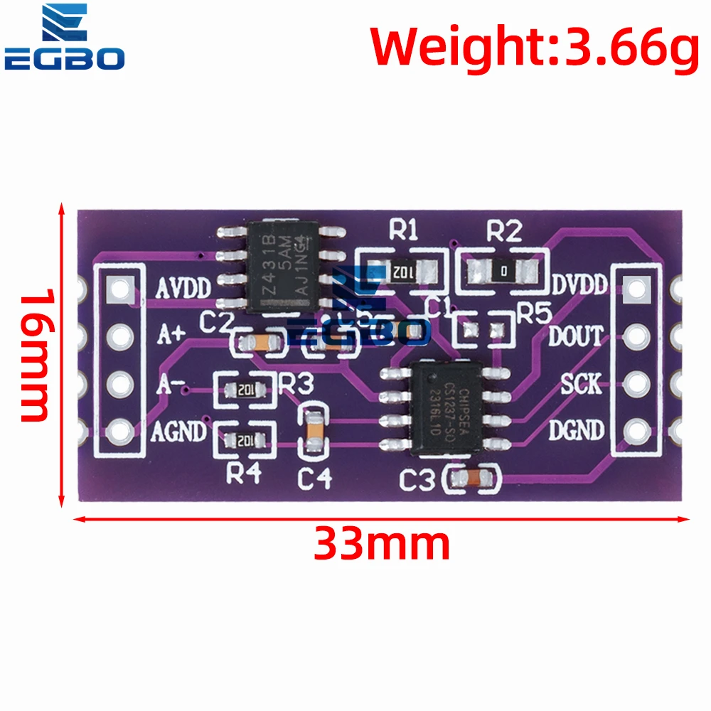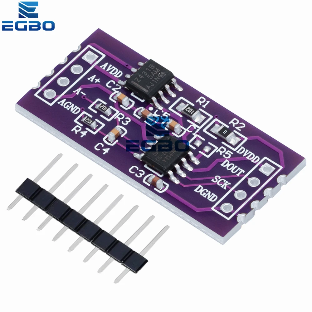 Experience reliable data acquisition with this high-quality purple PCB ADC module, specifically designed for demanding weighing sensing applications. Its sleek rectangular design features a professional matte finish, white silkscreen labels for easy identification, and neatly arranged surface-mounted components, including two black ICs, resistors, and capacitors. The onboard TL431 reference chip ensures voltage stability, making it ideal for sensitive measurements. The module’s neatly aligned pin headers facilitate seamless integration with microcontrollers and systems, creating a clean, organized setup. Its minimalist aesthetic and technical layout convey precision and dependability. Perfect for those seeking to enhance their measurement projects with a trustworthy, visually appealing component that exudes modern engineering excellence.