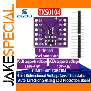 - Integrates the TXB0104 chip with 4-bit bidirectional level translation, supporting operation at 3.3V with auto-direction sensing.