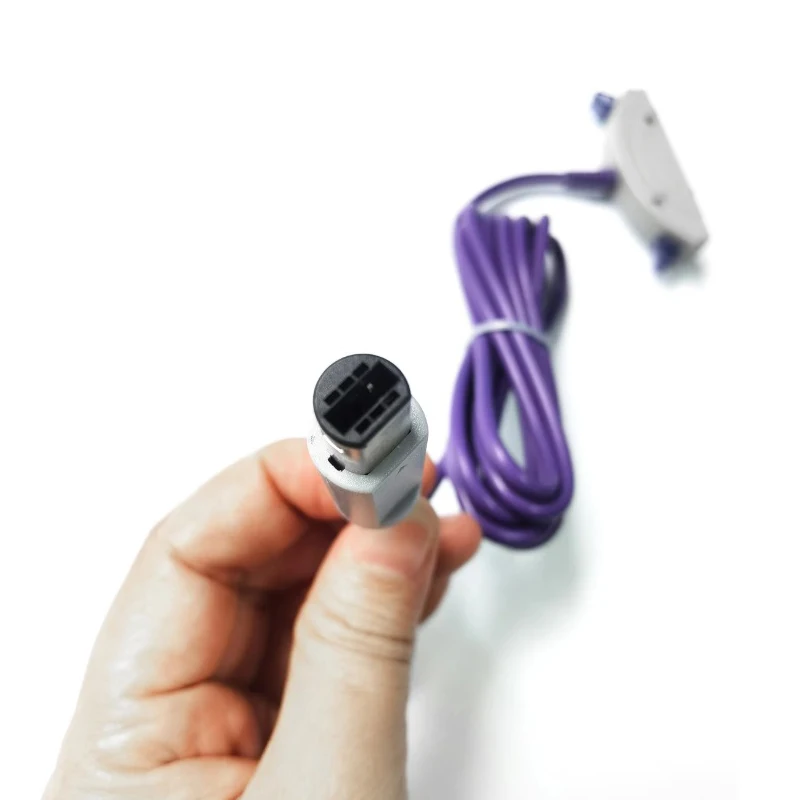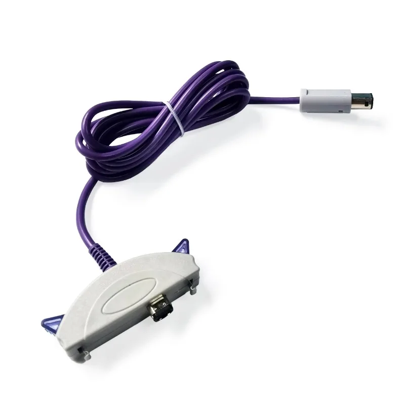 Enhance your gaming experience with this 1.8-meter purple link cable, designed for seamless data transfer between Game Boy Advance and Nintendo GameCube consoles. Crafted from durable ABS material, the cable features a white plastic housing for the GBA connector with a secure groove fit, and a larger white connector with a metallic contact section for the GameCube. Its flexible, thick insulation ensures reliable performance, while its sleek, minimalistic design combines vibrant color with functional simplicity. Perfect for connecting your GBA and GameCube, this cable allows smooth gameplay and effortless data sharing, elevating your console compatibility and gaming sessions with confidence and style.