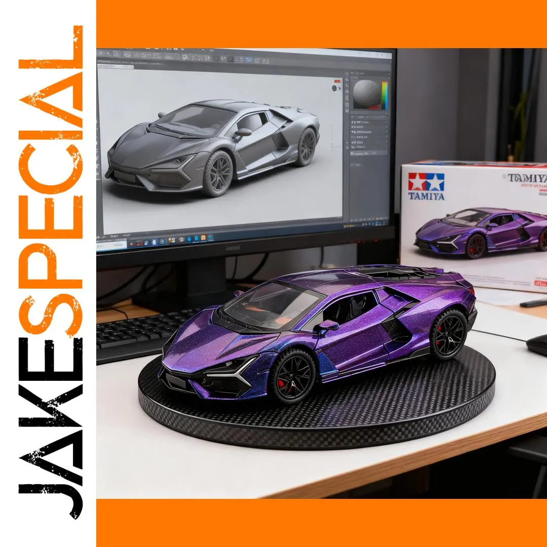 Experience the thrill of owning this meticulously crafted 1:32 scale diecast model of the Lamborghini Revuelto super sports car. Crafted from alloy metal, this high-simulation ornament captures every aerodynamic detail, from sharp angular lines to the sleek, modern silhouette. The stunning metallic purple finish features a glittery, sparkling effect that enhances its luxurious appeal. The model’s realistic wheels are black with eye-catching red hub accents, complemented by detailed tires with authentic tread patterns. With precise design elements like narrow, angular headlights and a low, wide grille, this piece brings the high-performance aesthetic of the actual supercar to your collection or display. Perfect for enthusiasts and collectors wanting to celebrate iconic sports cars.
