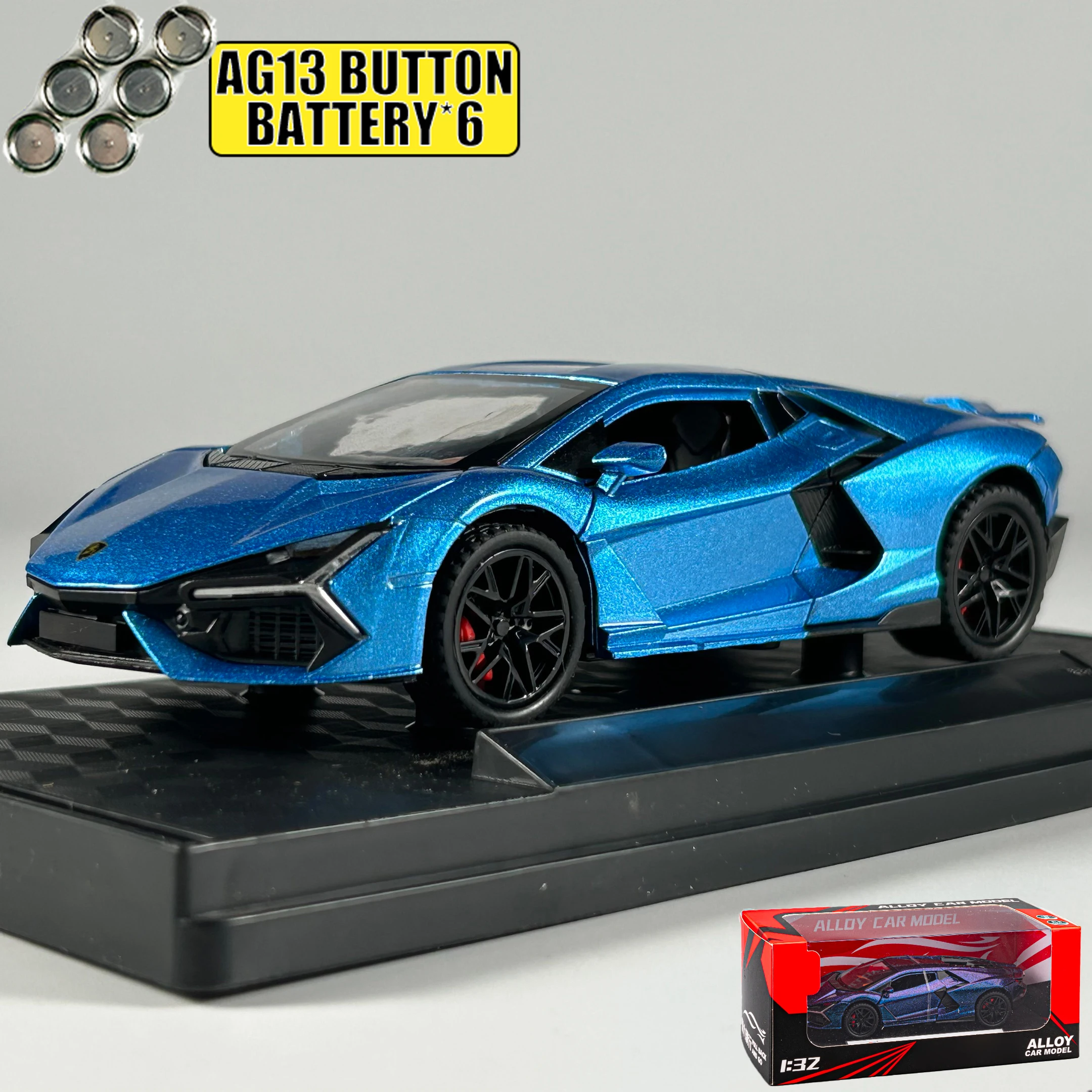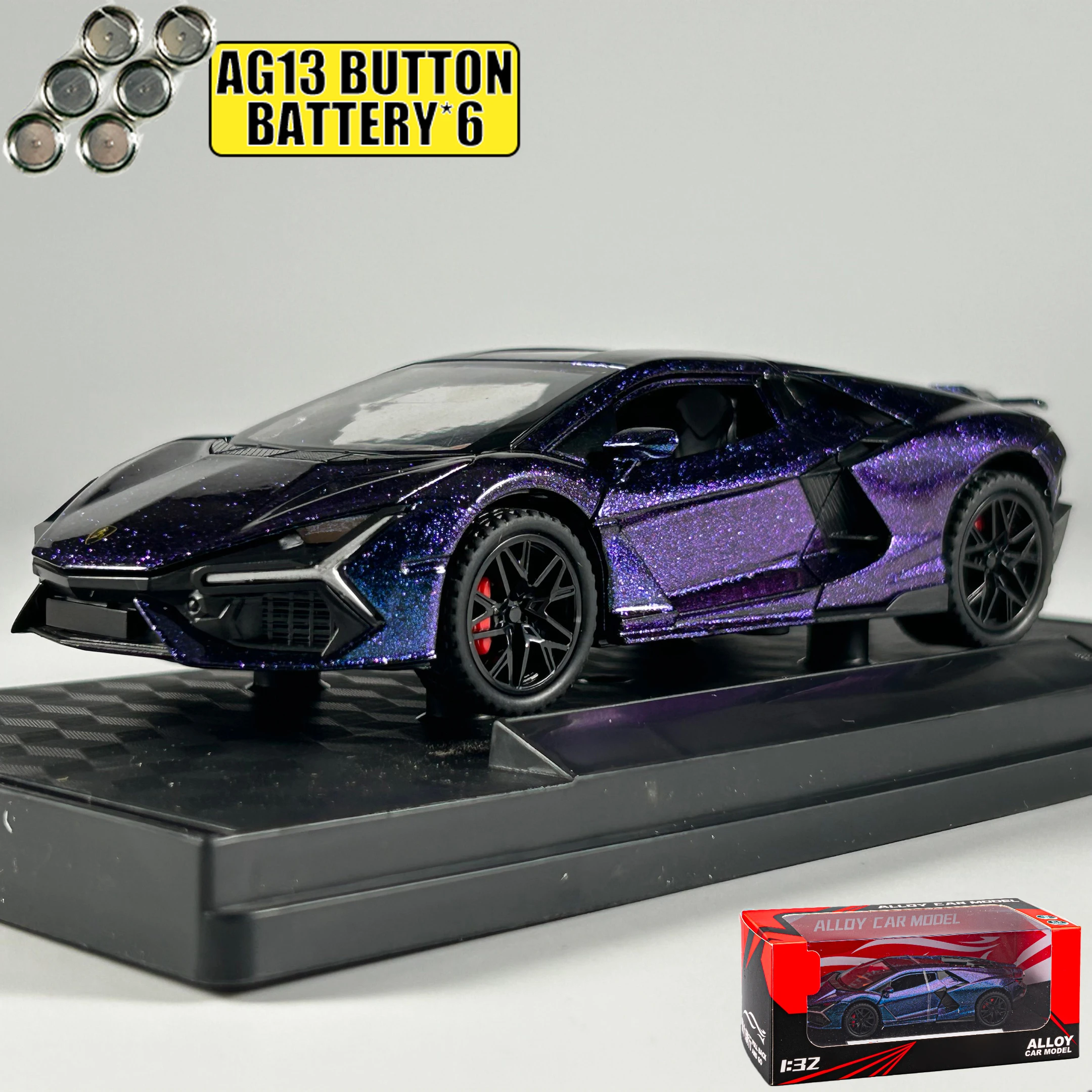 - Exquisite 1:32 scale alloy diecast model with realistic design details capturing Lamborghini aesthetics accurately.