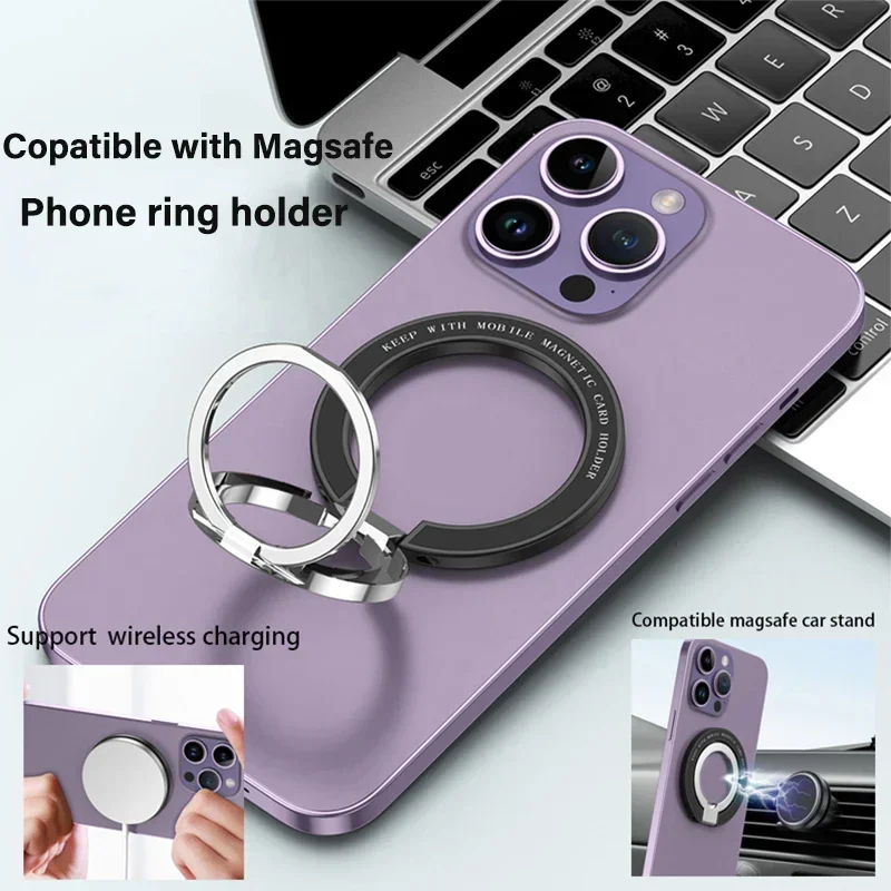 Experience the perfect blend of style and functionality with this sleek, purple magnetic phone holder stand. Designed for modern users, this lightweight alloy accessory offers a minimalistic yet sophisticated look, with polished metallic accents that radiate high quality. Its compact, foldable structure makes it easy to carry and store, ensuring you'll always have a reliable grip for your device wherever you go. The stand supports both horizontal and vertical orientations, enabling flexible use whether watching videos or browsing. The stepless adjustable angle allows you to set your phone at the ideal viewing position effortlessly. Compatible with iPhone 12, 13, and 14 series for direct use, it also works with other smartphones using a magnetic sheet. Elevate your device experience today.