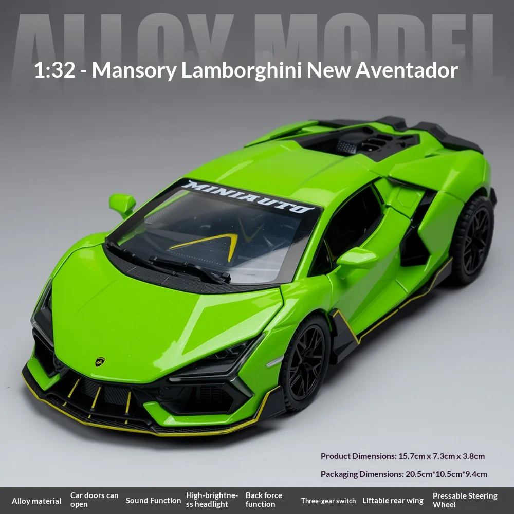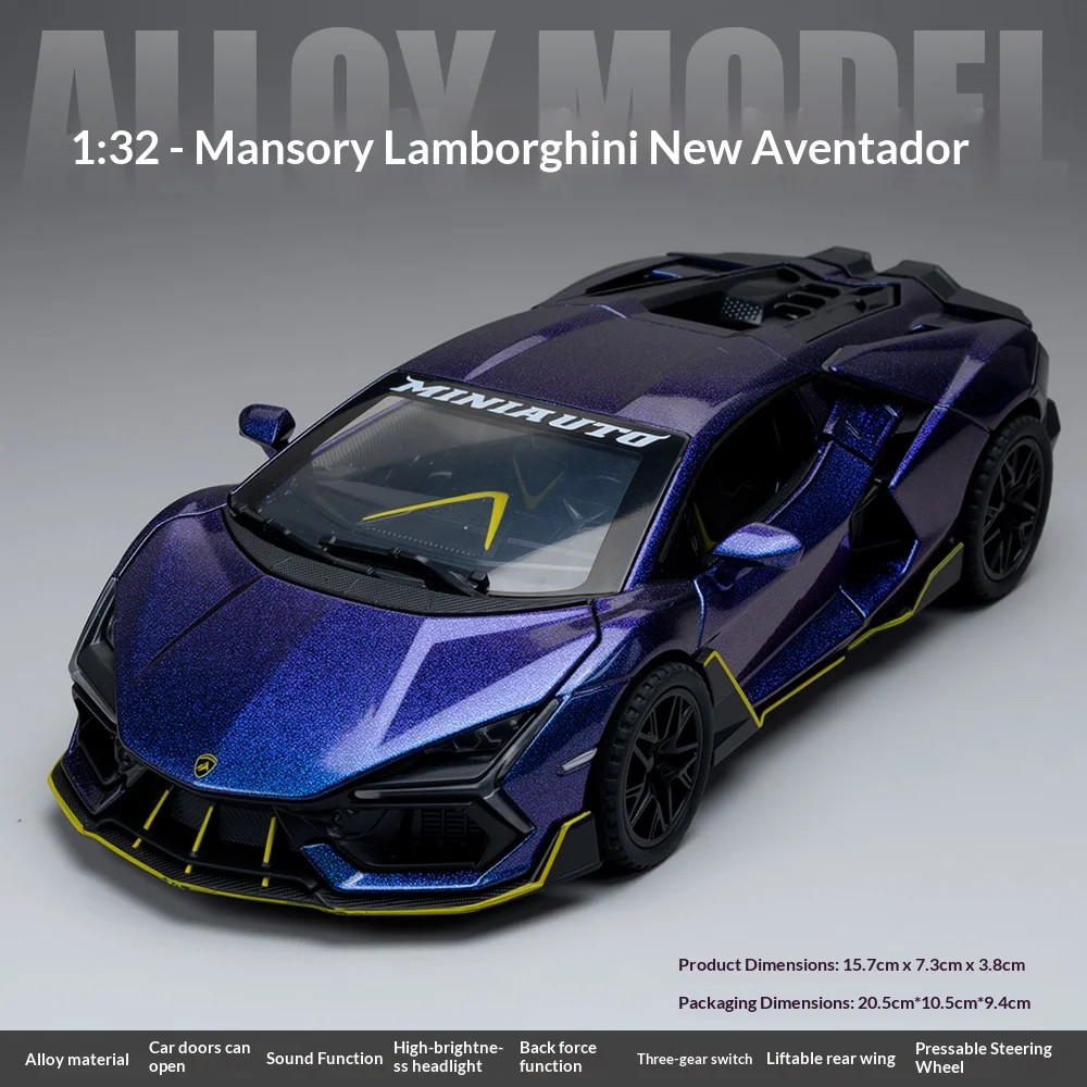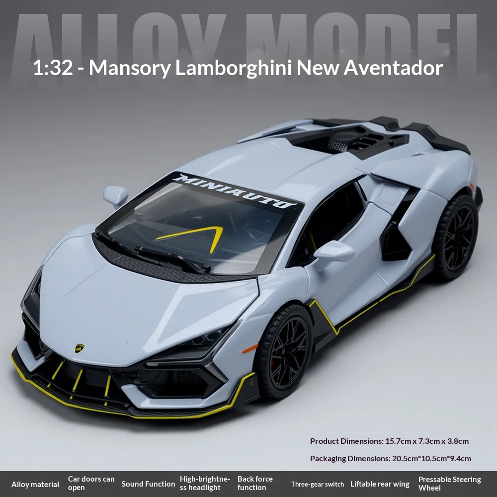 - Technical specifications include high-precision die-cast construction, detailed exterior features, and a scale accuracy of 1:32, making it a highly realistic replica of the original Lamborghini Maisare.