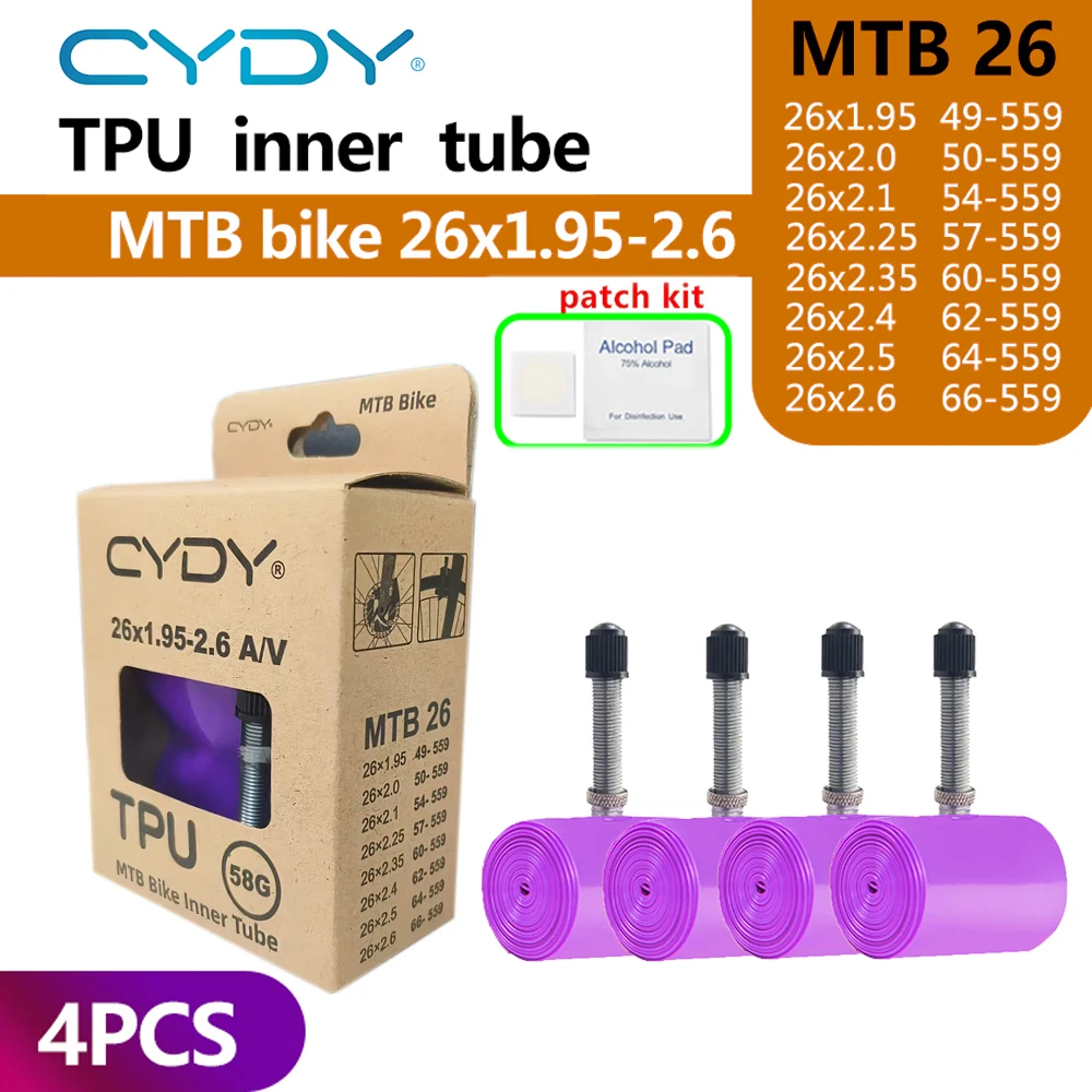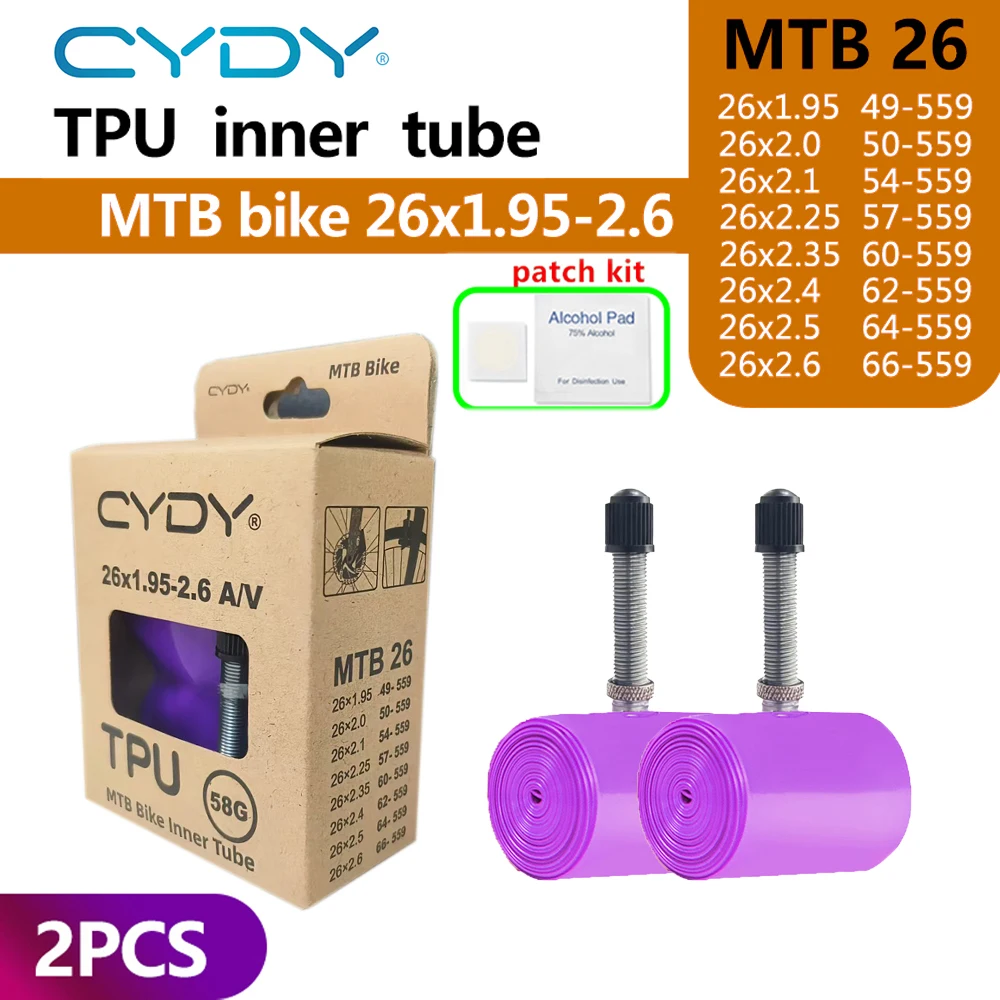 Upgrade your mountain biking experience with this vibrant purple TPU inner tube, designed for sizes 26×1.95-2.6, 27.5×1.95-2.6, and 29×1.95-2.6″. Featuring a durable Schrader valve with a 45mm length, each tube offers a lightweight profile—58 grams for 26-inch, 60 grams for 27.5-inch, and 64 grams for 29-inch models. Its glossy, smooth surface combines flexibility and strength, ensuring reliable performance. Carefully crafted for optimal inflation, it supports pressures up to 5 bar (72 PSI), with clear instructions for safe use. Perfect for serious riders who value quality, endurance, and style on every ride.