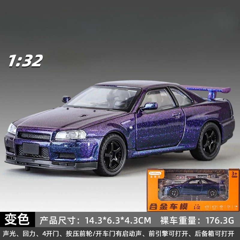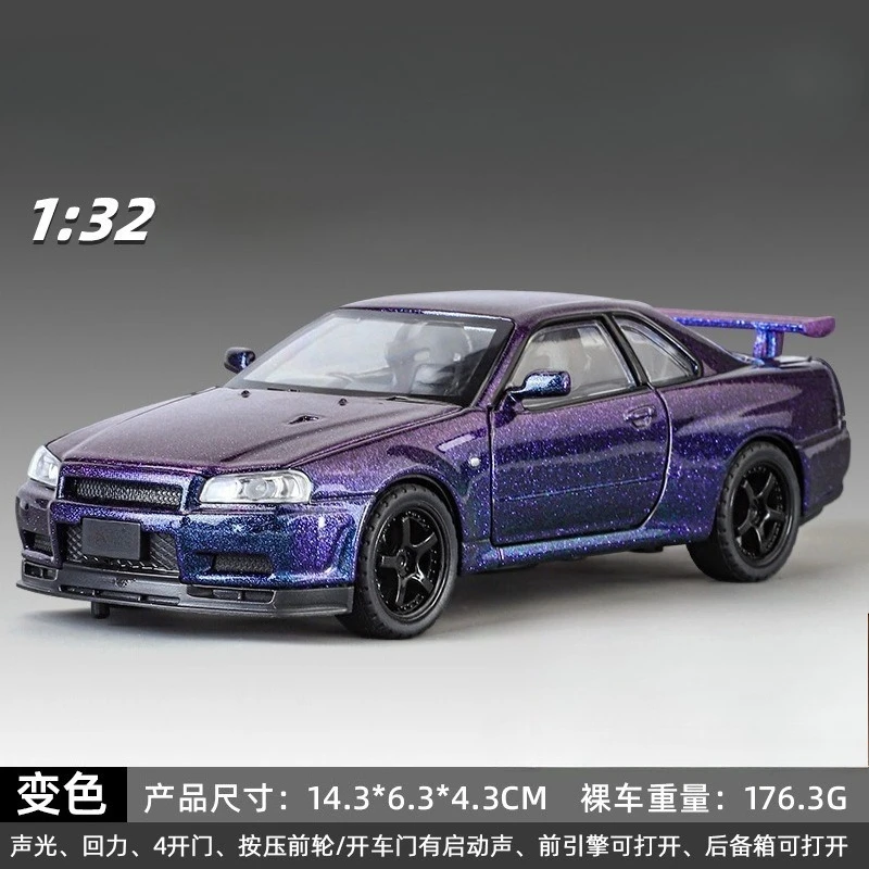 Purple Nissan Skyline R34 Diecast Model 1:32 Scale