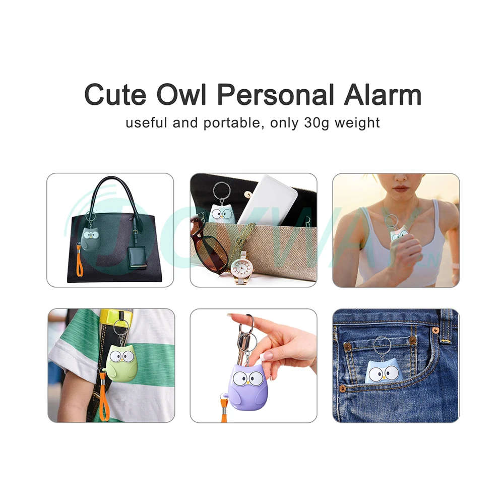 Imagine having this charming, compact safety device attached to your keys, bag, or belt for peace of mind throughout your day. Crafted with a playful cartoon owl design, it features soft pastel purple hues, large expressive white eyes with black pupils, a tiny yellow beak, and minimalist wing details for a friendly appearance. Its rounded contours and cute style make it accessible and appealing for children, women, and seniors alike. Equipped with a powerful 130dB alarm and LED light, it activates instantly when needed, providing critical safety reassurance. Lightweight at only 32 grams and measuring 55×52×26mm, this personal alarm is all about convenience and security, giving you confidence wherever you go.