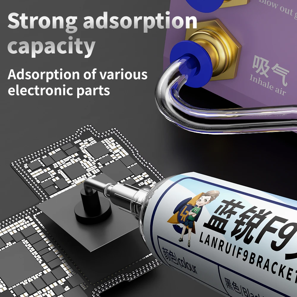 - Features dual-mode operation, including blowing and suction modes, allowing versatile use for dust removal, glue application, and component stabilization in various repair scenarios.