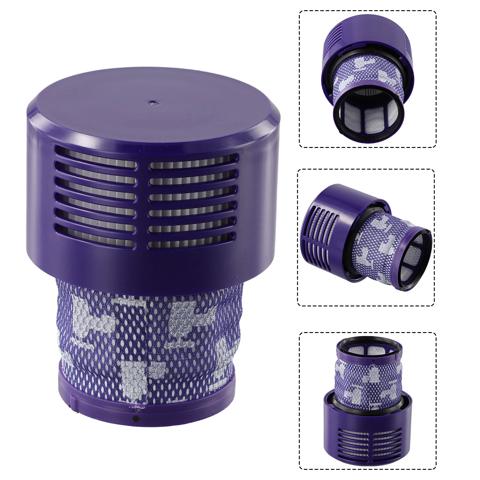 Experience the seamless fit and sleek design of this vibrantly purple, cylindrical vacuum filter, specially crafted for Dyson V10 series models including Total Clean, Animal, Absolute, and Absolute+. Its smooth, glossy surface reflects light beautifully, enhancing the modern aesthetic. The rounded top and clean lines give a minimalist, contemporary look. The evenly spaced horizontal vents made of durable plastic not only look sophisticated but also ensure optimal airflow and filtration efficiency. Designed for easy cleaning and long-term reuse, this high-quality filter contributes to maintaining your vacuum’s peak performance. Its vibrant color and minimalistic style blend well with household décor, while its sturdy construction guarantees durability over time. Elevate your vacuuming experience with this functional, visually appealing filter that complements your Dyson V10.