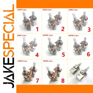 - Selectable resistance values of 25K, 50K, 250K, and 500K ohms, offering versatility for different pickup configurations, with dedicated A (audio) and B (linear) types for precise control.