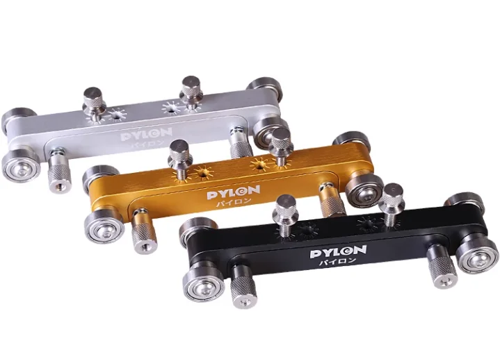 Experience precision guitar maintenance with this professional-grade PYLON Nut and Saddle Polisher. Crafted from durable aluminum alloy, it features a sleek, rectangular design available in black, silver, and gold. Its compact dimensions of 16 cm length and 4 cm height, combined with 2 cm steel wheels, enable seamless control for polishing and leveling guitar nuts, saddles, frets, and bridge areas. The polished metallic finish exudes a modern, professional aesthetic, perfect for both hobbyists and seasoned luthiers. Equipped with knurled adjustment screws, this tool allows you to fine-tune pressure and alignment easily. Its ergonomic design ensures comfortable handling, making detailed fretwork or nut shaping quick and efficient. Trust this tool for flawless guitar setups and restorations.