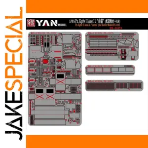 Immerse yourself in the world of military modeling with this highly detailed 1:35 scale plastic kit of the Pz.Kpfw II Ausf.L “Luchs”. Designed for enthusiasts aged 12 and above, this kit offers precision and craftsmanship, allowing you to assemble a realistic replica of this historic tank. The components are arranged on grey sprues with clean black outlines and striking red highlights that indicate connection points and intricate details. The meticulously molded parts showcase a variety of shapes—rectangles, cylinders, and irregular forms—reflecting the tank’s armored and functional design. Its schematic layout makes assembly an engaging experience, perfect for hobbyists seeking quality and accuracy in their models. Build your own military masterpiece with confidence and pride.