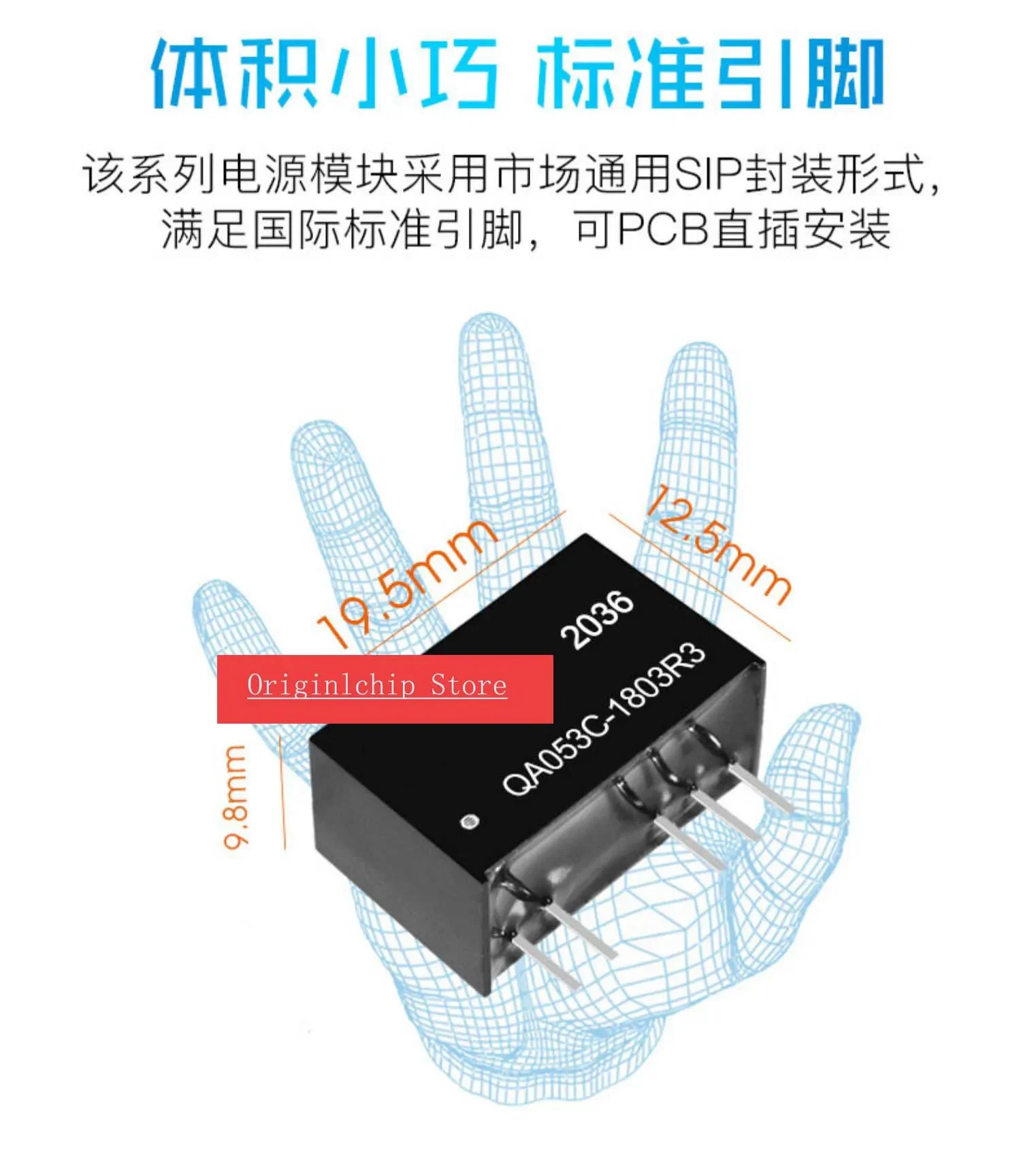 The QA053C-1803R3 dual-output SiC driver is designed for efficient DC/DC power conversion, featuring an input voltage range of 4.5V to 5.5V and dual output voltages of up to 18V and -3.5V. Its sleek, rectangular black finish with white alphanumeric markings exemplifies a modern, industrial aesthetic. Equipped with three precise metal pins, this durable voltage regulator offers customizable options for tailored electrical applications. Ideal for advanced electronic projects requiring high stability and reliability, it seamlessly integrates into your circuit, providing a compact, high-performance solution with a clean and professional appearance that inspires confidence in your technical setup.