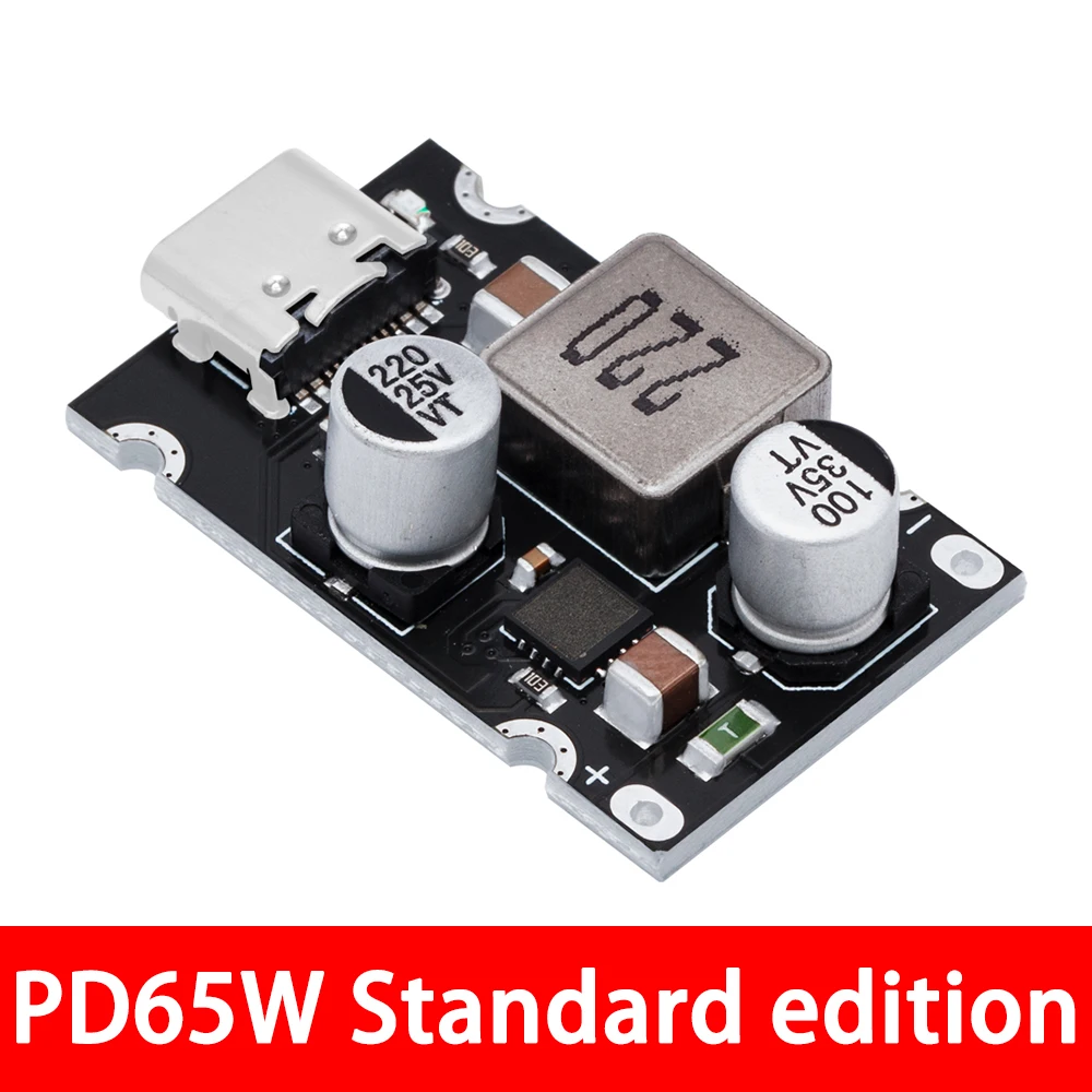 Imagine upgrading your device’s charging capabilities with this high-performance module. Designed with precision and cutting-edge technology, this compact charging module supports QC4.0 and QC3.0 protocols, delivering up to 65W of power via Type-C USB PD output. Its versatile input voltage range of DC 8-32V ensures compatibility with various systems, while a maximum current of 3.25A guarantees fast, efficient charging. The sleek, industrial aesthetic highlights the robust gray and metallic components, including a prominent copper coil and large electrolytic capacitors. This module’s durable construction and flexible connector options make it perfect for customizing high-power charging solutions for professional or DIY projects.