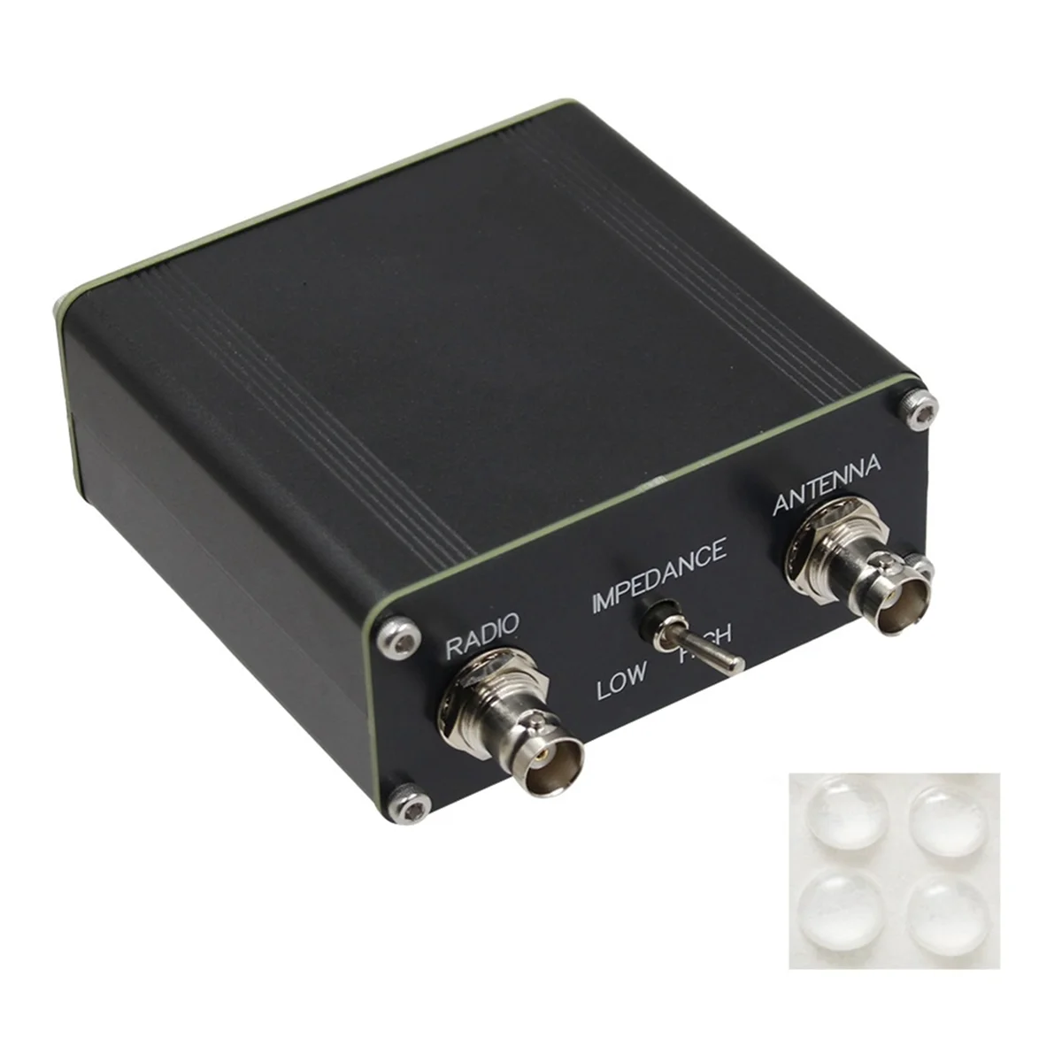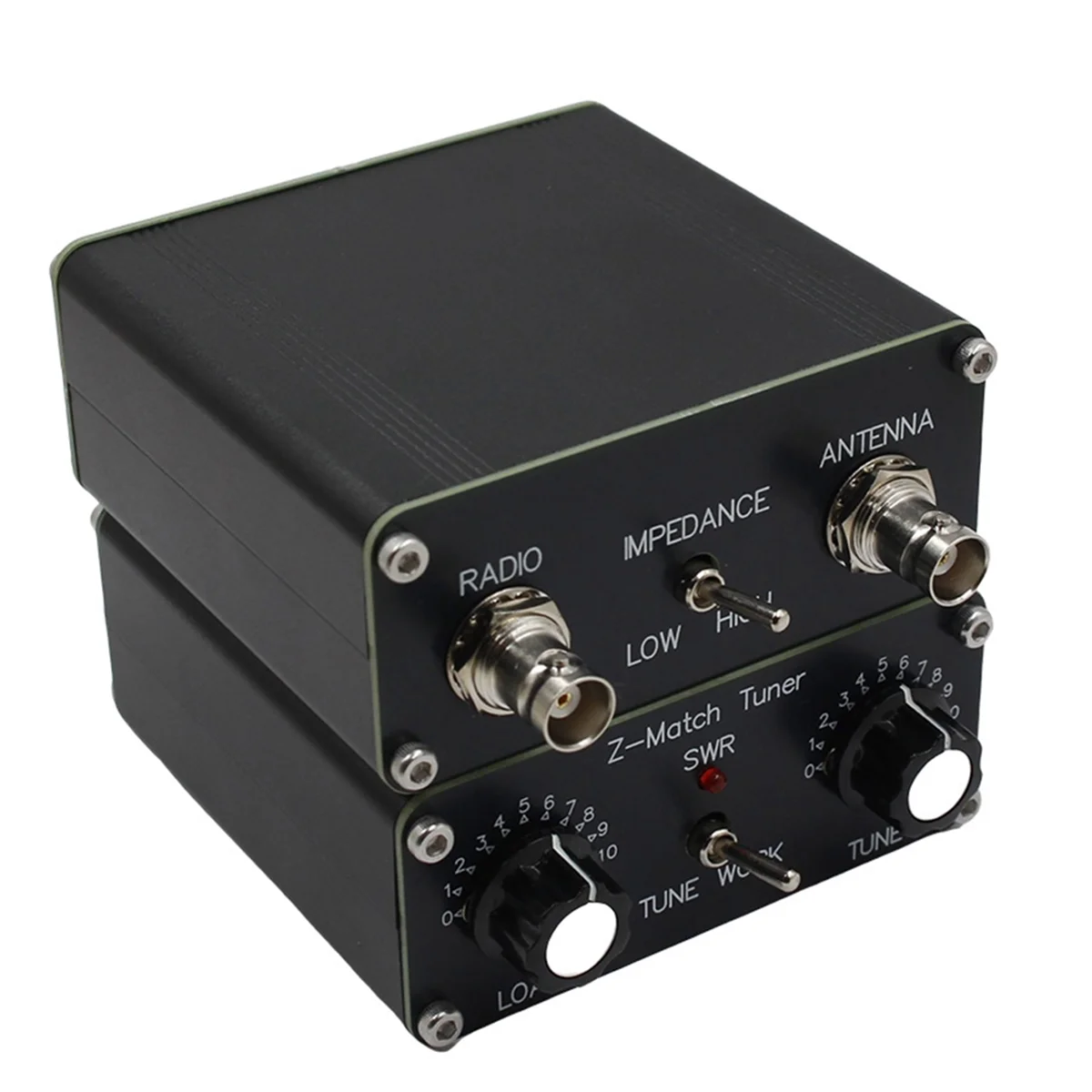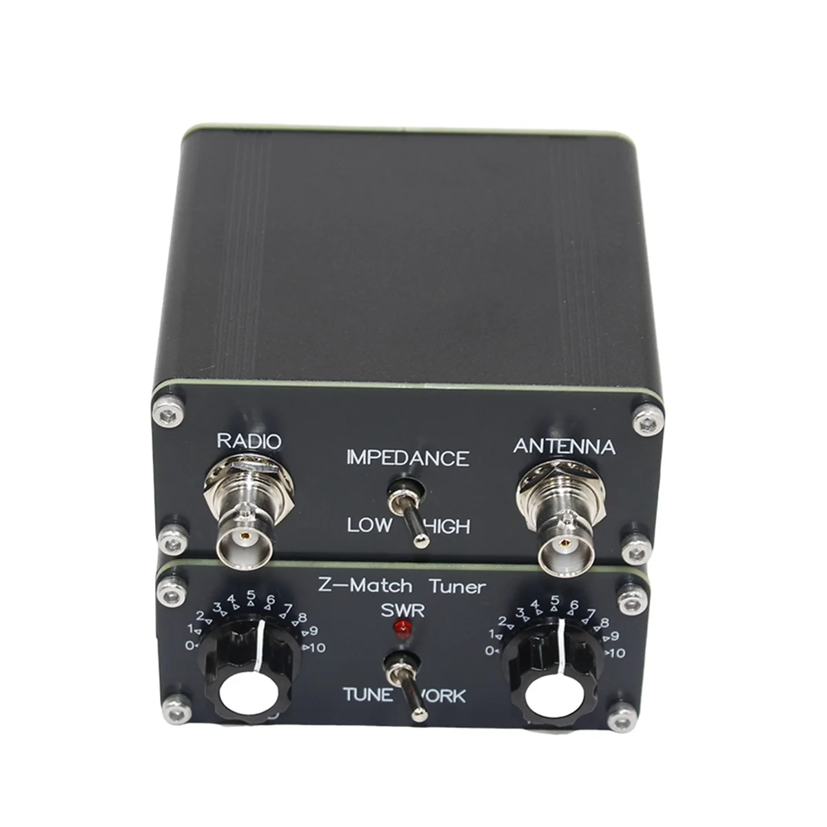 Experience reliable performance with this compact and durable QRP Z-Match Manual Tuner Antenna. Designed for amateur radio enthusiasts, it offers precise tuning from 3 to 28 MHz, supporting up to 5W continuous power (10W intermittent). Its sleek black metal construction ensures durability while maintaining a minimalist look. The device features a textured rotary knob for easy adjustments and two threaded metal F-type connectors for secure cable attachment. Small foot pads provide stability during operation. Easy to integrate into your setup, this tuner seamlessly combines functionality with a modern aesthetic, enabling confident performances.