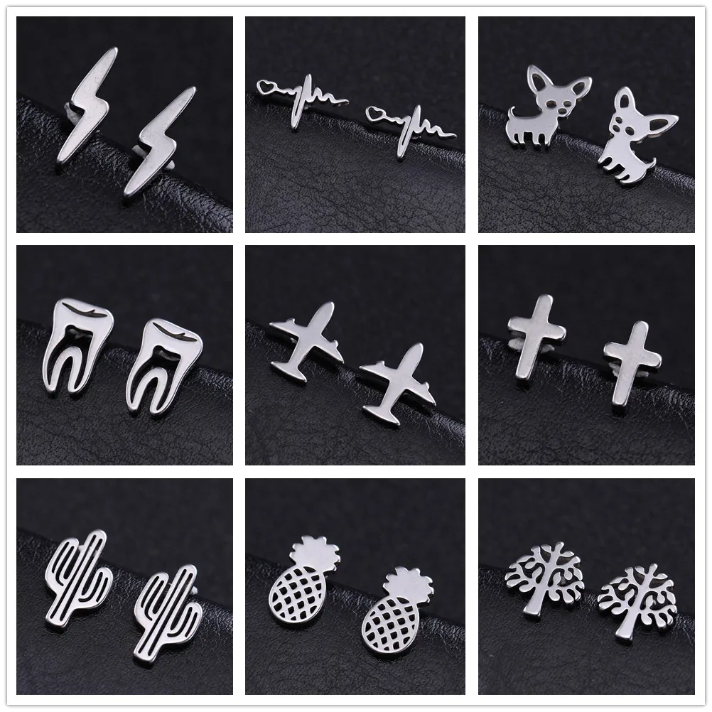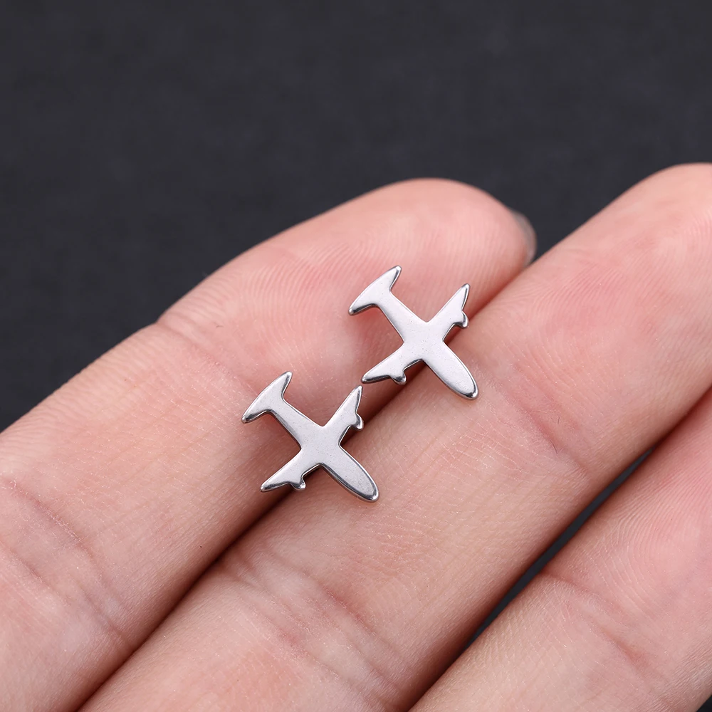 Add a playful touch to your style with these stainless steel mini stud earrings, each featuring a unique cactus design resembling a small airplane. Crafted from rust-resistant, non-allergenic material, these earrings measure according to the specifications shown, designed for comfortable wear without size worries. The secure push-back closure ensures they stay in place, making them perfect for year-round fashion, casual outings, or gifting. With a sleek silver tone, durable finish, and eco-friendly construction, these trendy earrings are an ideal accessory for women and girls seeking fun, stylish jewelry that combines modern minimalism with whimsical charm.