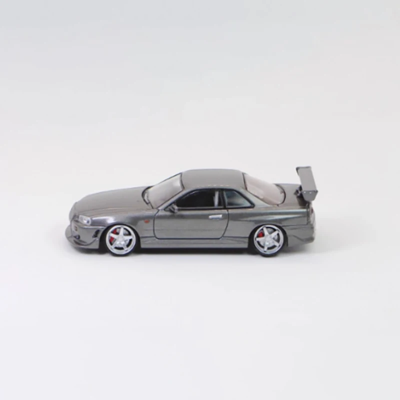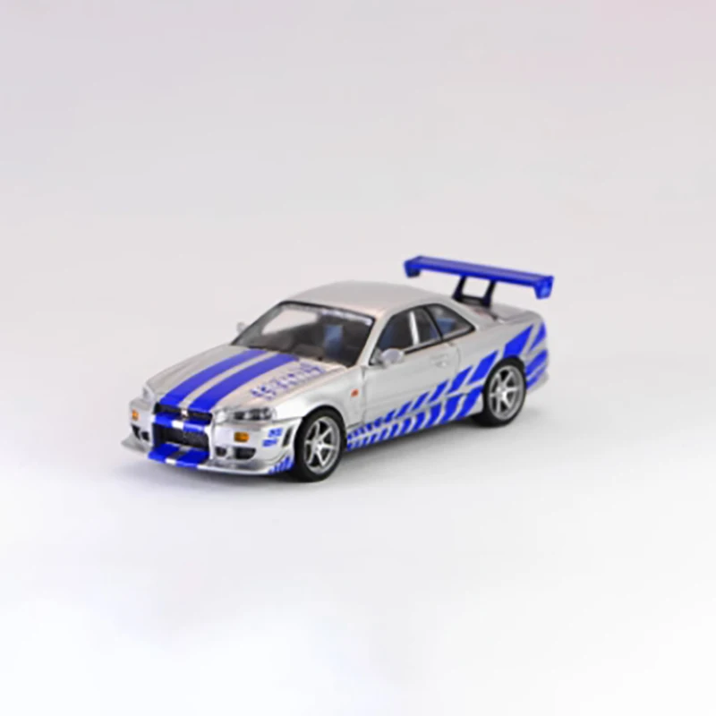 Picture yourself adding this exquisite R34 C-West 2 miniature to your collection, showcasing sleek, aggressive styling with a metallic silver finish and vivid blue accents. Its 1/64 scale is perfect for display, with finely crafted details such as racing stripes, realistic alloy rims, and a bold rear wing spoiler that truly stands out. The transparent windows reveal a glimpse of the meticulously designed interior, highlighting craftsmanship and quality. Made from alloy and plastic, this static model offers a durable, weighty feel. It’s a must-have for enthusiasts who appreciate refined racing aesthetics and high-detail craftsmanship, perfect for display, gifting, or as a collectible piece to elevate your collection.