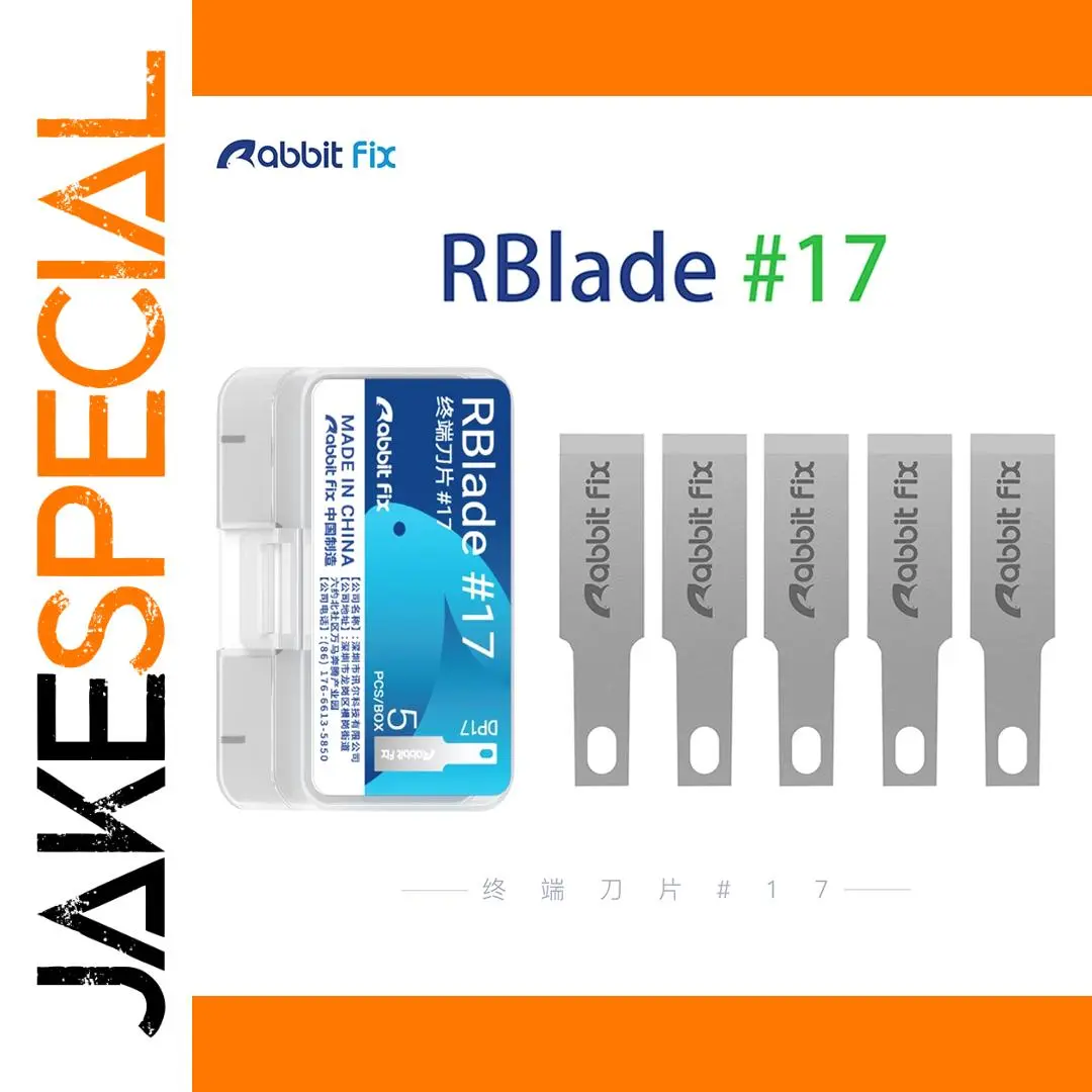 Experience the reliability and sharpness of this this set of five Rabbit Fix DP17 terminal blades, designed for detailed electronics repairs. Made from durable, high-quality metal, these blades measure 37mm in length, 9mm in width, and 0.5mm thick, offering perfect precision for cutting wires, circuit boards, and components. The polished, reflective surfaces showcase their sleek, minimalist design, emphasizing their technical elegance and professional quality. Packaged in a transparent box measuring 54.5mm by 33mm by 20mm, these blades are easy to store and access whenever needed. With ergonomic design and compatibility with most standard repair tools, this set ensures a comfortable grip and efficient performance for expert or DIY repair projects alike.