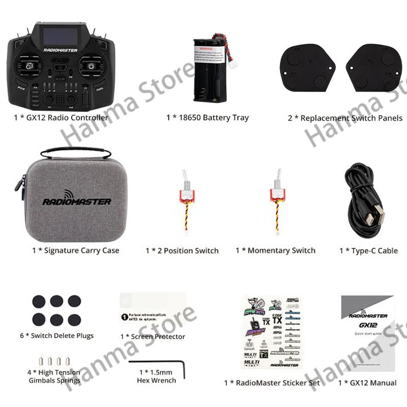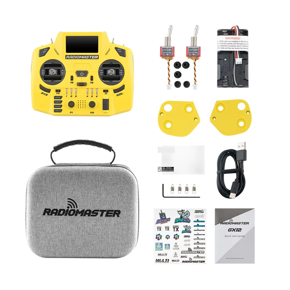 Elevate your remote control experience with this high-performance, customizable, and stylish radio controller. Its innovative features, durable design, and vibrant color options make it the ideal choice for serious flyers looking for reliability and control. Once you hold this controller in your hands, you'll feel confident and ready to take on any challenge in your drone racing or flying adventures. Don't wait—upgrade your setup today and enjoy the perfect blend of technical excellence and aesthetic appeal that only the Radiomaster GX12 Crush can deliver.