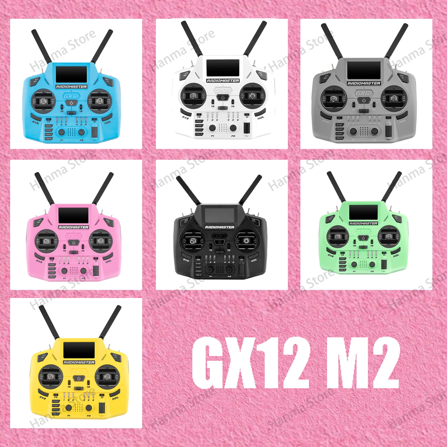 Experience the seamless blend of style and precision with the Radiomaster GX12 Crush radio controller. Designed with adult enthusiasts in mind, this controller offers an ergonomic, modern aesthetic enhanced by bold color options like bright blue, classic white, sleek gray, vivid pink, black, green, and cheerful yellow. Its streamlined rectangular shape with rounded edges ensures comfort during extended use while its matte surface minimizes glare and fingerprints. Equipped with foldable dual-band antennas, a crisp OLED display, and a sophisticated digital gimbal, this controller delivers top-tier control and responsiveness. The customizable RGB indicators and modular switch panels allow tailored setups, making it perfect for serious hobbyists. Durable and environmentally resistant, the GX12 Crush ensures reliable performance in demanding environments, elevating your flying experience to new heights.