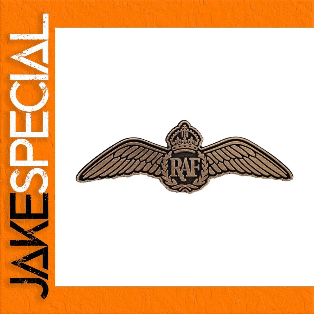 This retro military-style enamel pin is a distinctive piece that showcases a vintage bronze finish, enhancing its nostalgic allure. The central design features a circular emblem emblazoned with the stylish letters “RAF,” topped with a finely detailed crown that signifies its royal affiliation. Surrounded by a laurel wreath, the pin elegantly reflects military heritage. Flanking the emblem are intricately designed wings, their fine lines adding texture and depth. Measuring approximately 4.5 cm, this unisex accessory is perfect for adorning jackets, backpacks, and hats, making it a versatile addition to any wardrobe. This piece is not just jewelry; it is a badge of pride and history.