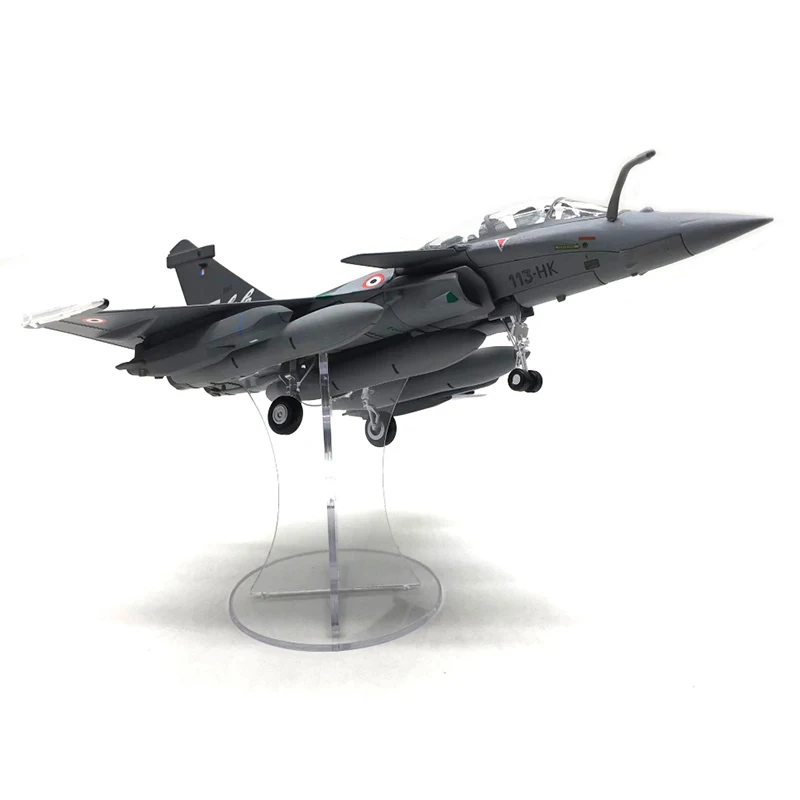- Includes clear canopy revealing cockpit interior, tail markings including French roundels, and external fuel tanks with weapon pylons for display accuracy.