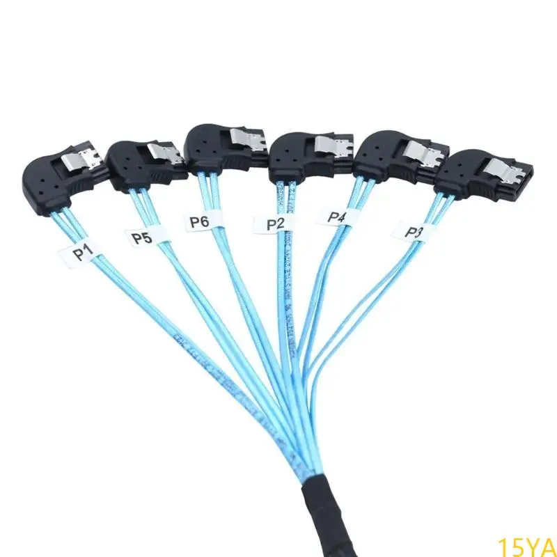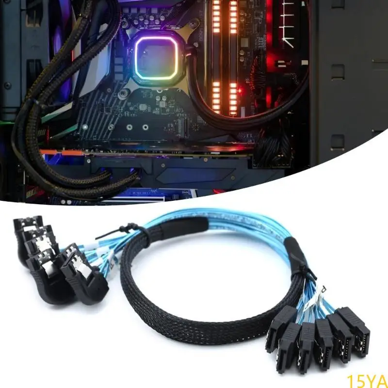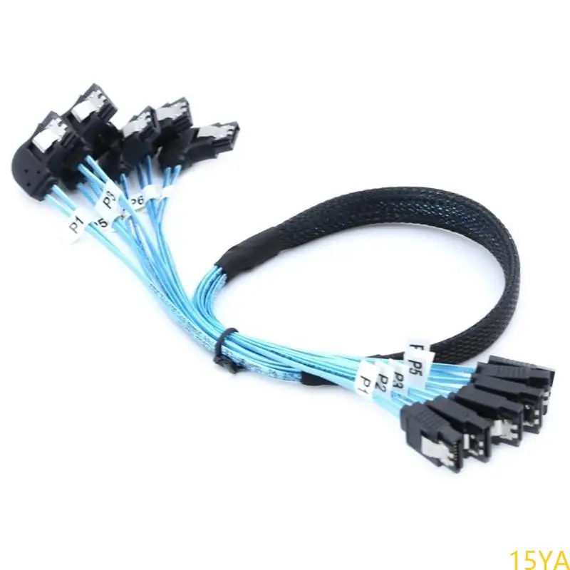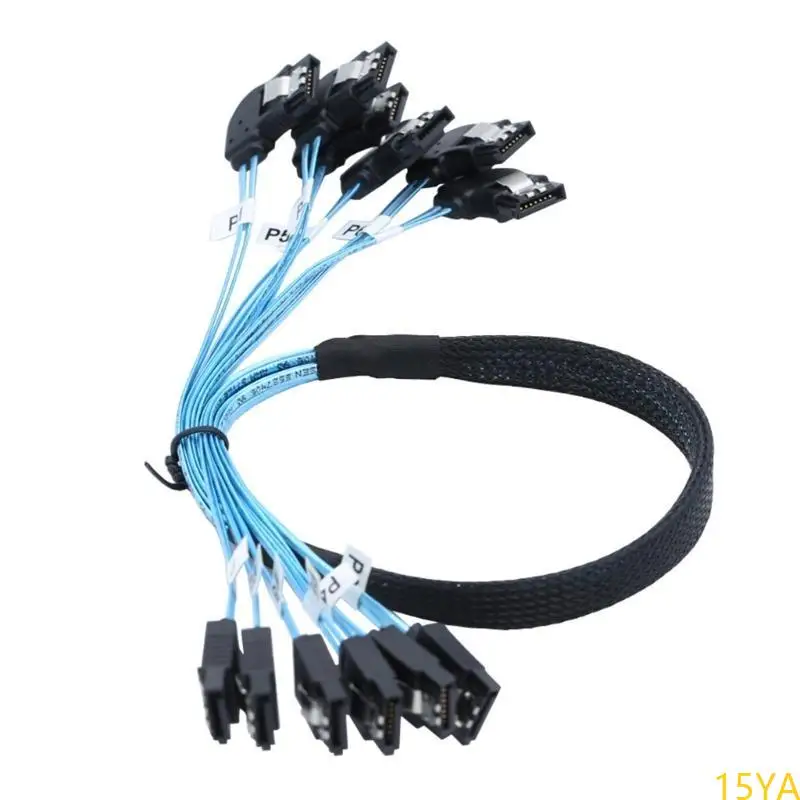 Experience reliable data transfer with this high-performance SAS4.0 SATA to SATA 7-pin cable, designed specifically for RAID systems. Its sleek, utilitarian design features vibrant blue flat ribbon wires that provide clarity and easy identification. The black connectors with metallic contacts combine durability and a professional appearance, while the locking clip mechanism ensures secure attachment. Reinforced with braided sleeves, this cable offers excellent resistance to interference and wear, making it an ideal choice for server or data center environments. Available in lengths of either approximately 50cm or 100cm, it guarantees flexibility in tight or spacious setups. Invest in this durable, sophisticated cable for seamless server and RAID operations.