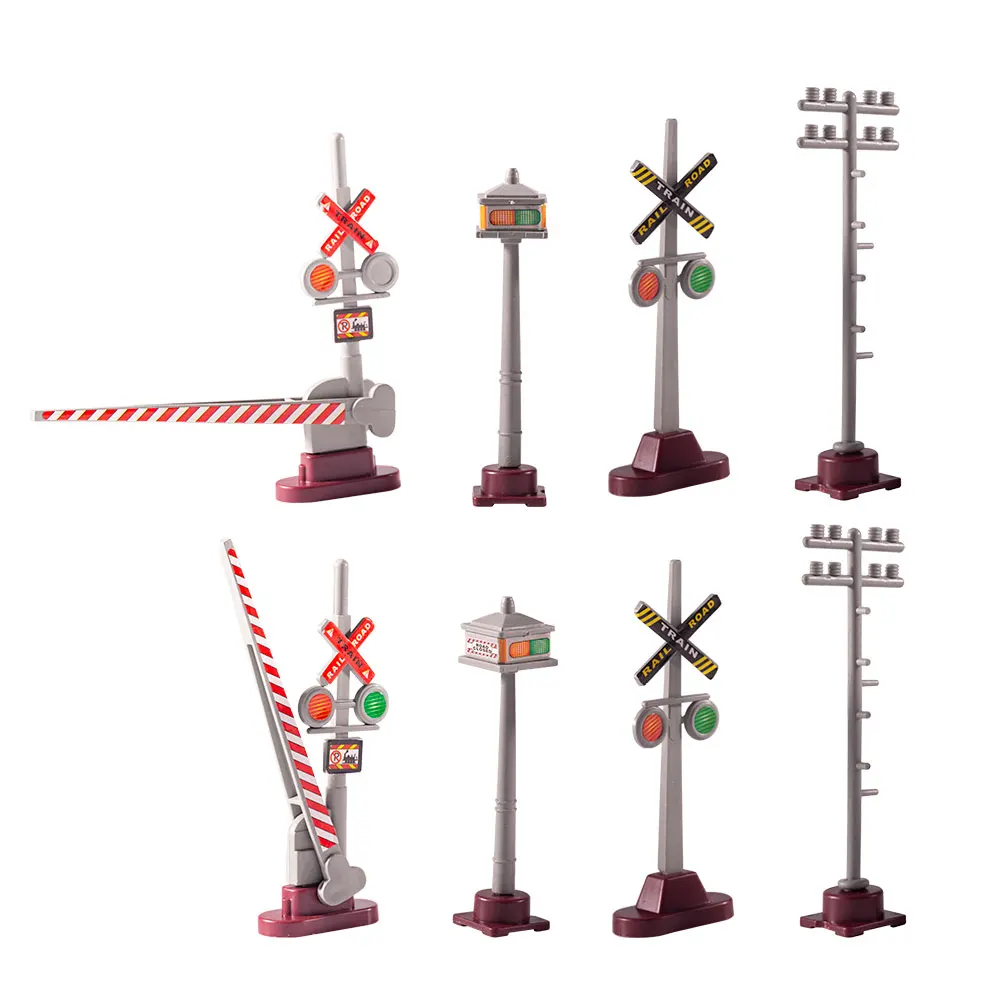 - Includes 8 detailed models: crossing gates, telephone poles, and signs, crafted from sturdy ABS plastic for realistic visual appeal in railway layouts.