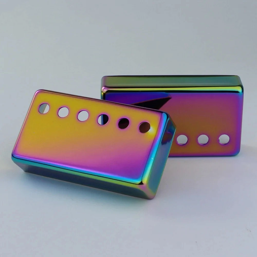 Transform your guitar into a stunning visual masterpiece with this rainbow chameleon pickup cover set. Whether you're repairing or customizing, these covers will captivate attention and elevate your instrument’s style. With their intricate artwork, iridescent finish, and sturdy cupronickel build, they’re designed to last and impress. Picture yourself playing on stage or in your studio, knowing your guitar is truly one of a kind. Don’t miss out on this opportunity to add a personal touch and artistic flair to your gear. Elevate your musical experience and showcase your style today!