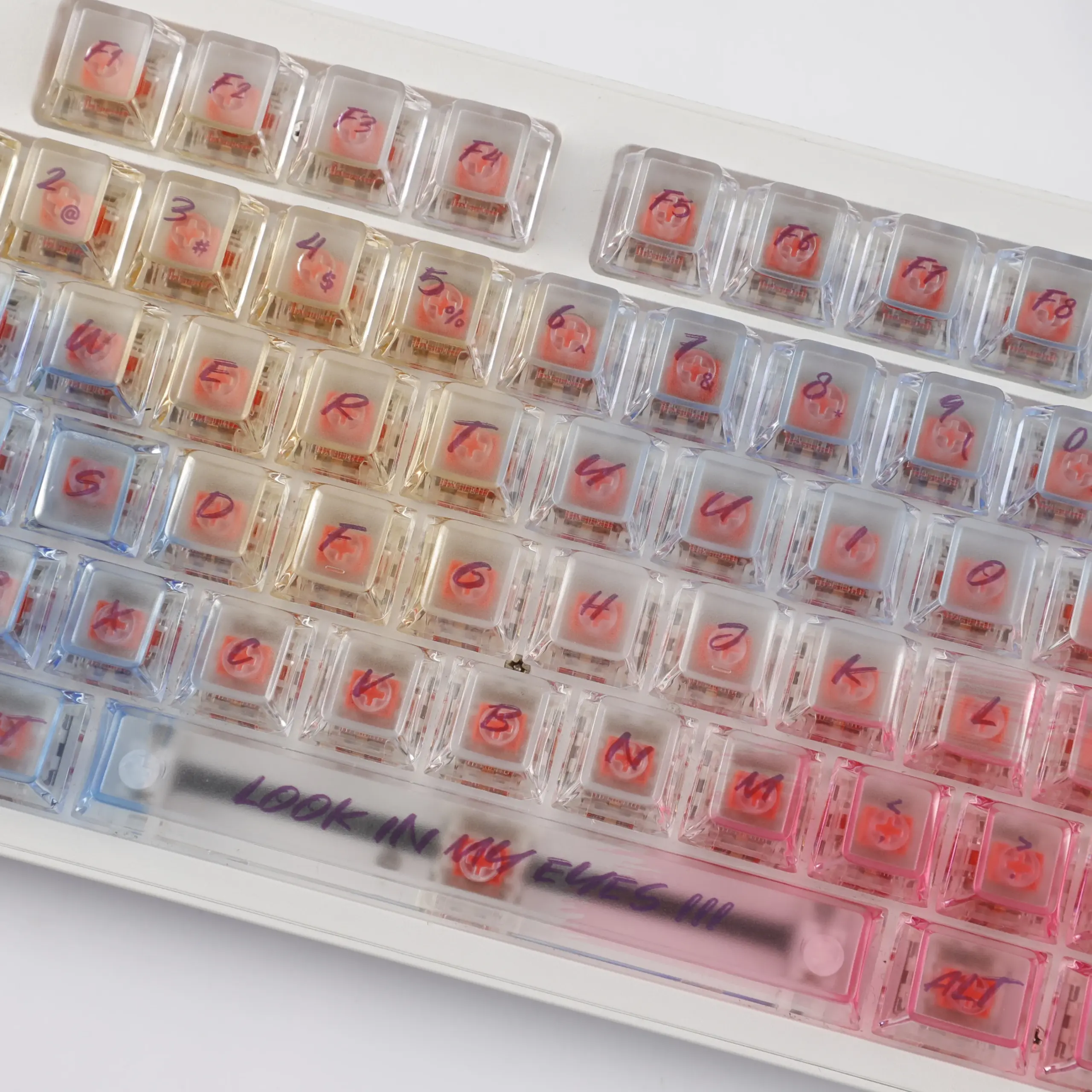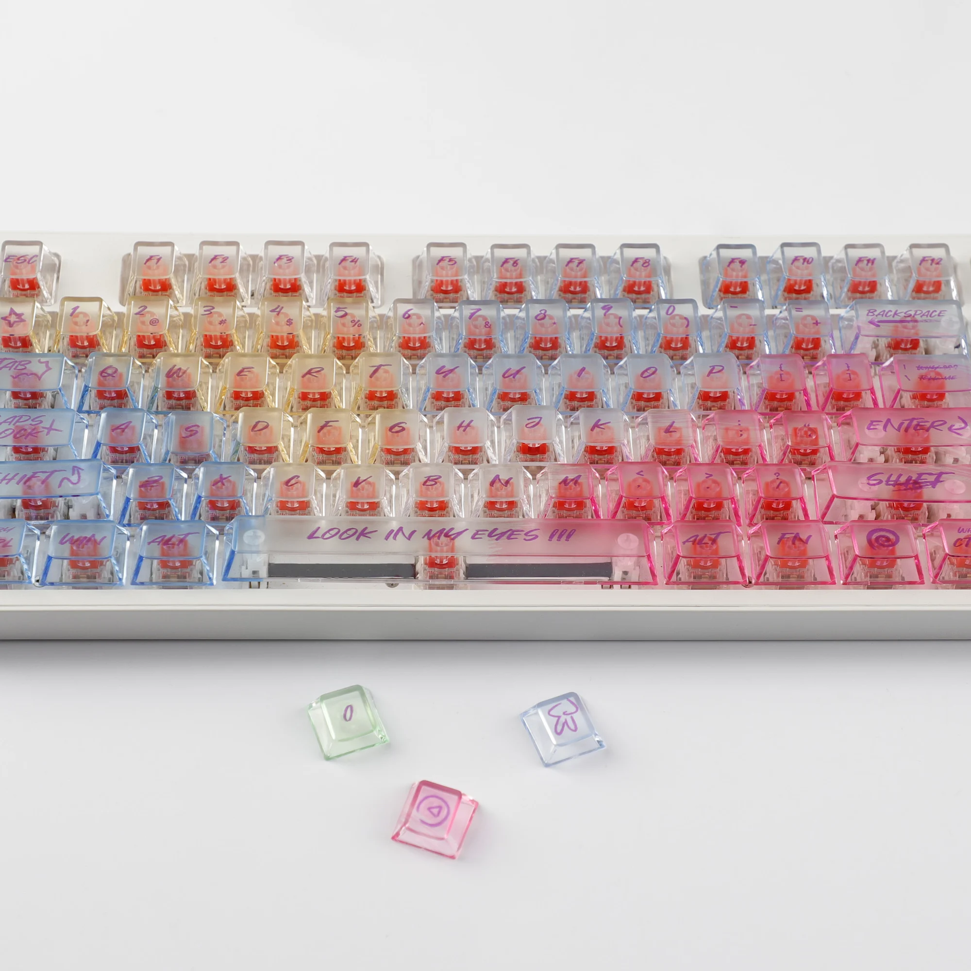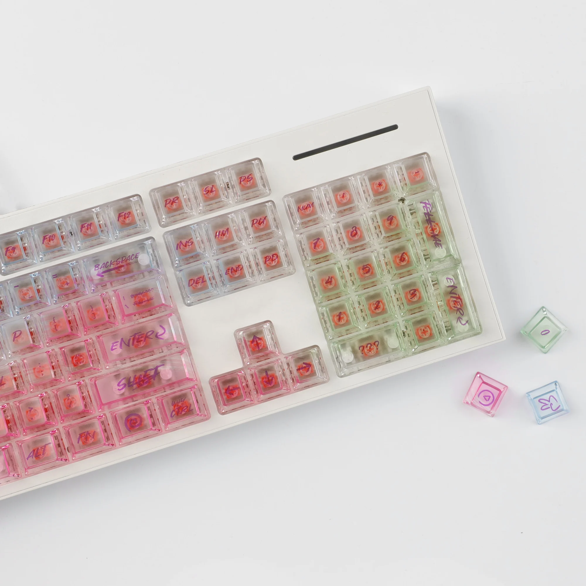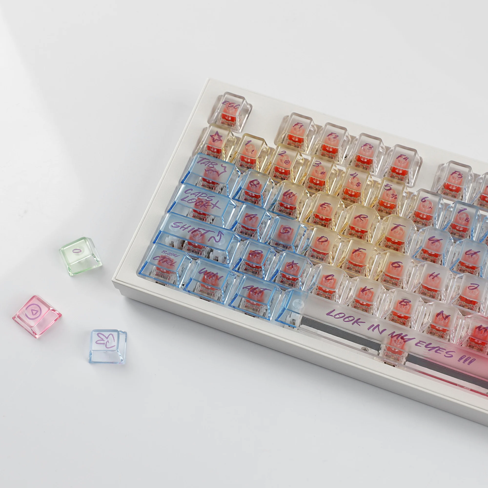 - Made from high-quality PC material with a glossy, gradient finish that enhances visual depth and shimmer, perfect for customizing a vibrant and artistic keyboard appearance.