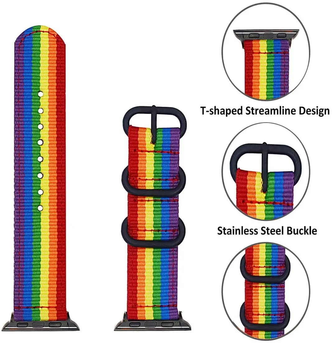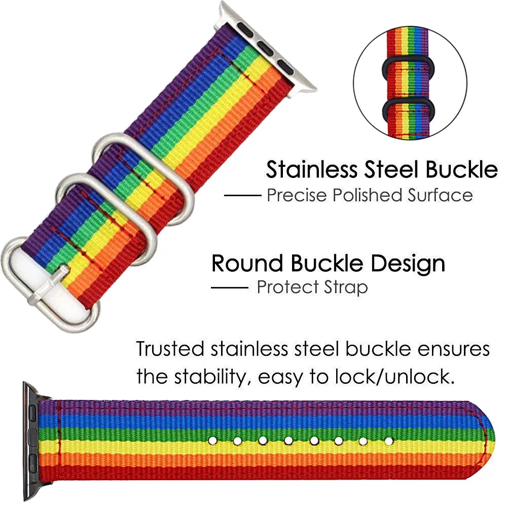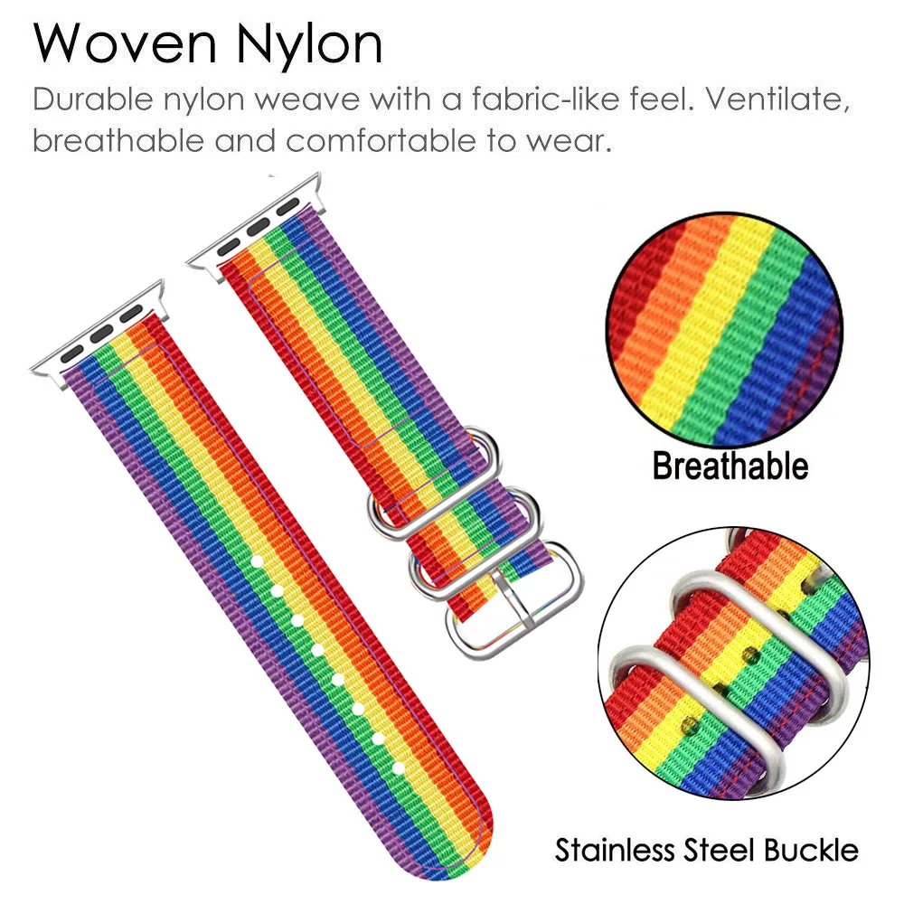 - Bright rainbow-striped design with durable woven nylon for vibrant, eye-catching style, suitable for all occasions and guaranteed to enhance your Apple Watch’s appearance.