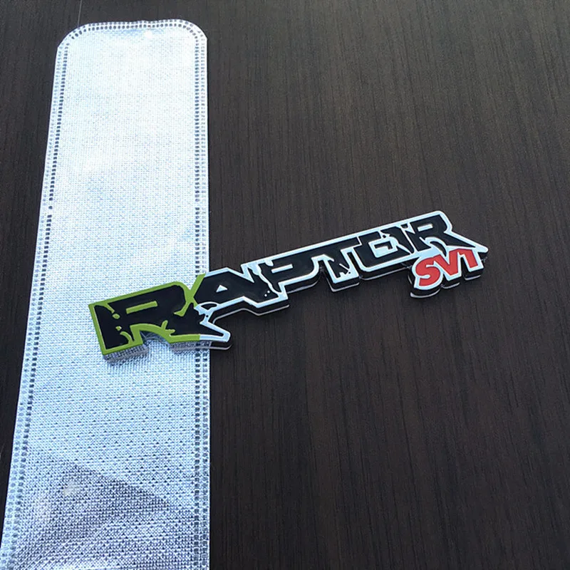 Enhance your vehicle's appearance with this eye-catching metal emblem, designed for a sleek and modern aesthetic. Crafted from durable metal, this emblem features detailed, vibrant colors that stand out on any vehicle. The bold “RAPTOR” text, combined with the contrasting white background, black outline, and luminous lime green accent, gives your car an aggressive and sporty look. The red “SVT” badge adds a touch of sophistication with its glossy finish. Perfectly lightweight at 30 grams, this emblem is easy to attach and durable enough to resist weathering. Whether for a Ford or Acura, this versatile accessory will elevate your vehicle's exterior with a custom, high-quality finish. Make your car truly unique today!