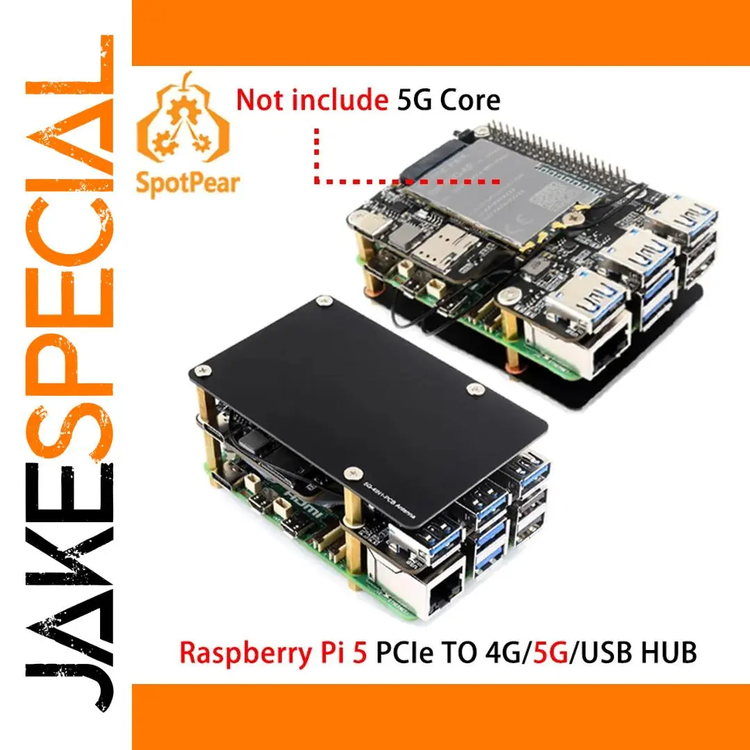 Experience seamless high-speed connectivity with this carefully designed Raspberry Pi 5 PCIe to M.2 4G/5G and USB 3.2 HUB. Its modern, matte black PCB surface showcases a clean, technical aesthetic that fits perfectly into advanced projects. The HAT features precise port arrangements, including three USB 3.2 Gen1 ports and a Type-C port for networking, debugging, or power input, alongside a Nano-SIM slot for cellular modules. Thanks to its onboard power monitoring chip and EEPROM, you gain real-time operational data and secure device identification. Built with a 16-pin PCIe interface, this module ensures stable, high-speed data transfer directly to the Raspberry Pi 5, making it ideal for industrial, networking, or IoT applications. The integrated cooling vent and mounting holes facilitate efficient operation and easy installation.