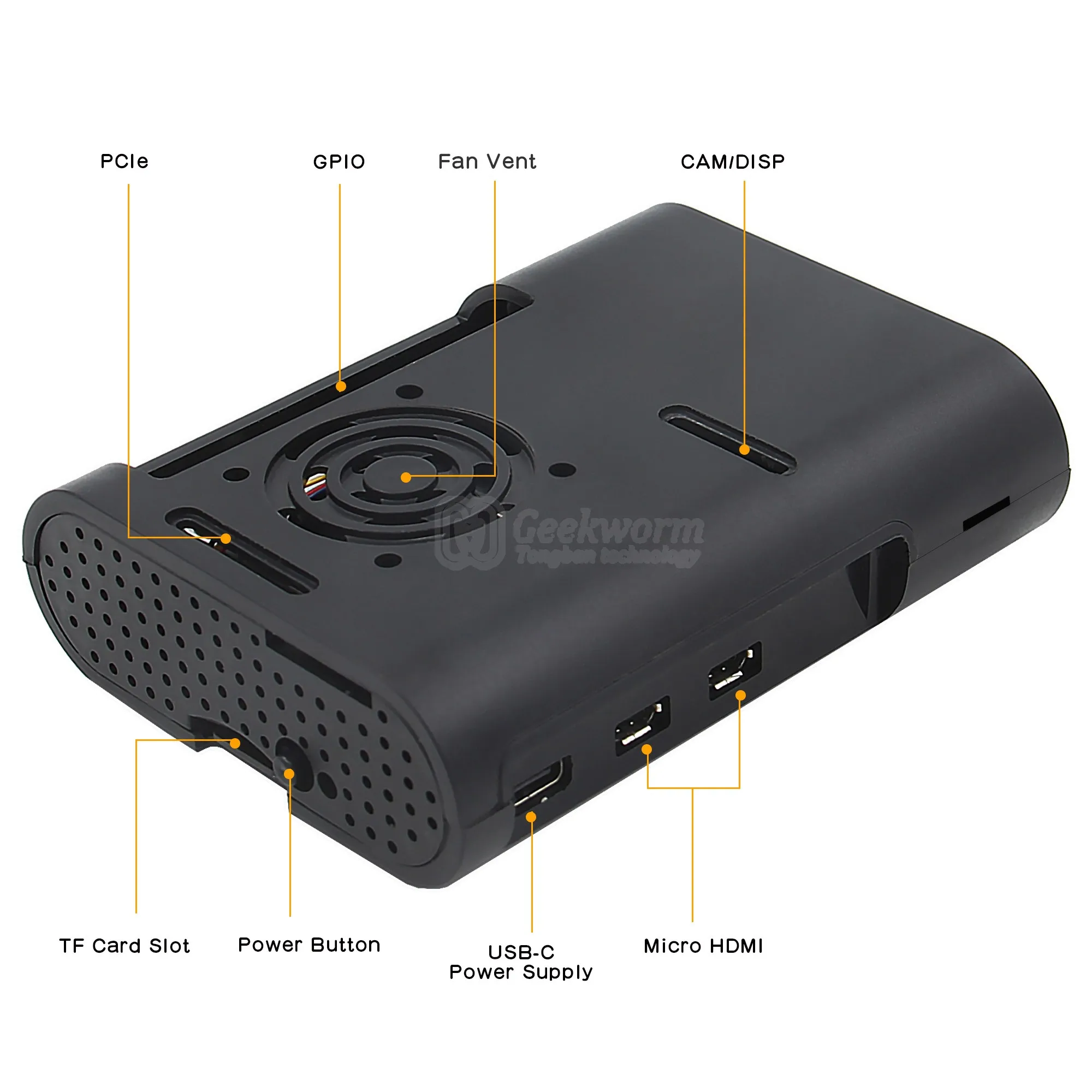 Protect your Raspberry Pi 5 with this sleek ABS case, model P502, weighing just 31 grams and measuring 8.9 x 7 x 2.5 cm. Designed exclusively for the 4GB or 8GB Raspberry Pi 5, it features precise cutouts for all ports and slots, ensuring seamless connectivity. The case supports installation of a 5V DC cooling fan, compatible with 3007 fans, to keep your device cool during intensive use. Easy to assemble, it includes four rubber pads for stability and a screw pack for secure installation. Elevate your Raspberry Pi 5 experience with this durable, minimalist shell designed for optimal protection and functionality.