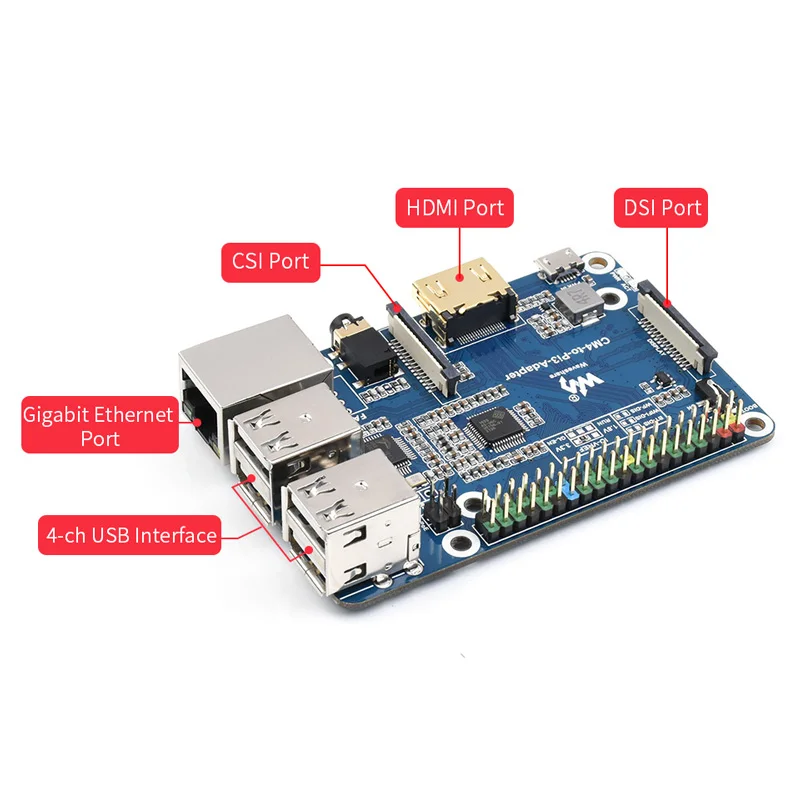 - Features an onboard standard CM4 connector compatible with Raspberry Pi Compute Module 4 Lite / eMMC series for versatile device integration.