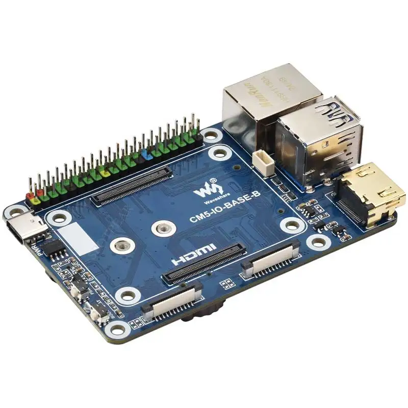 - Supports Raspberry Pi Compute Module 5 Lite and EMMC series modules via standard CM5 socket and a color-coded 40-pin GPIO header for versatile connectivity.