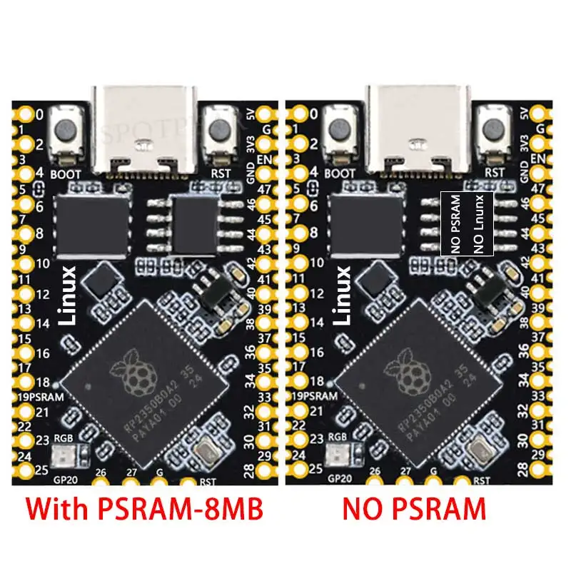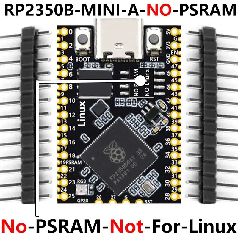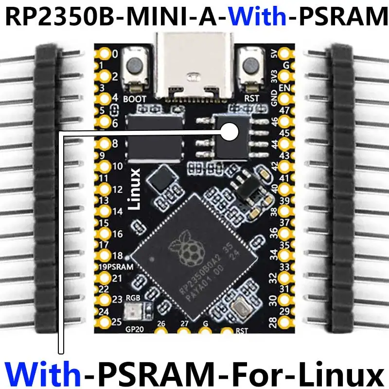 - Compatible with RP2350B-MINI-A model and Linux or non-Linux projects, supporting extensive customization with or without 8MB PSRAM.